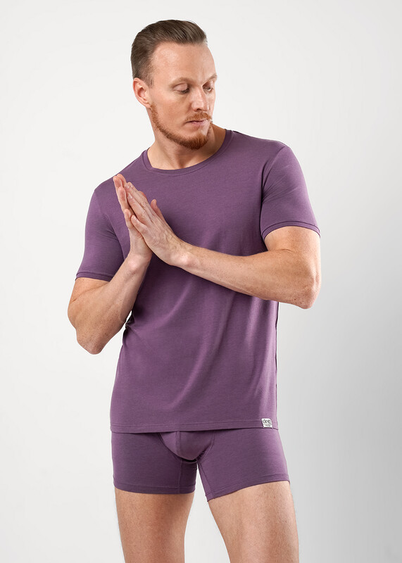 Стильная мужская футболка из модала с коротким рукавом и имиджевой нашивкой.