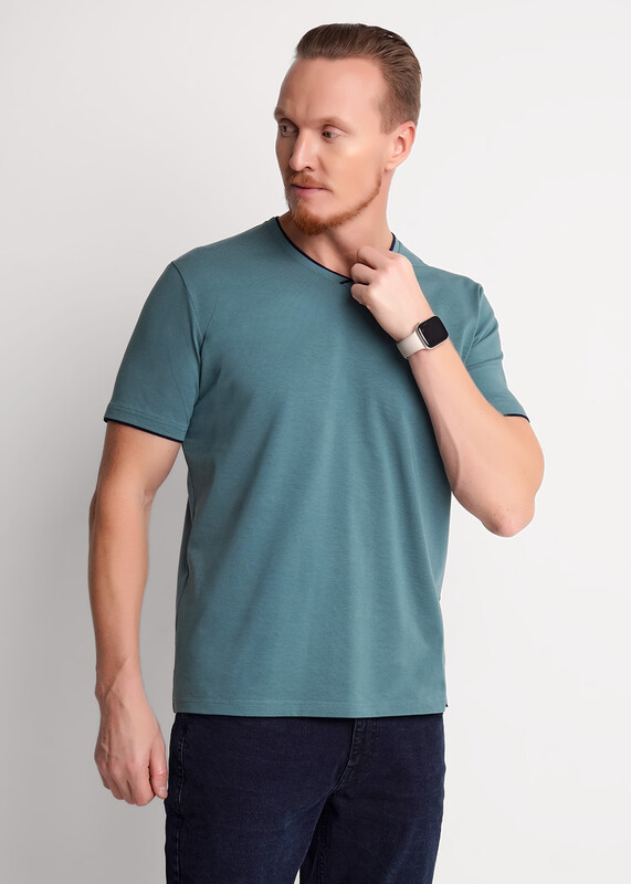 Производитель: Clever Мужская футболка из трикотажного полотна. Изделие с V-образным вырезом горловины и коротким втачным рукавом. Футболка отличается за счет контрастных вставок по горловине и манжету, фирменным принтом.