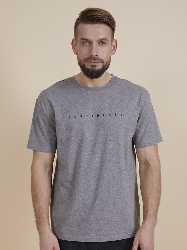 Мужская футболка оверсайз с принтом. Футболка свободного кроя подарит вам комфорт и свободу движения. Джемпер такого силуэта скрывает недостатки фигуры и подчёркивает достоинства. Майка с комфортными свободными рукавами идеальна для повседневной носки. Модель неприхотлива в уходе. Трикотажная футболка по переду украшена стильным лаконичным принтом с объёмными буквами, надпись переводится: "Уверенность". Принт качественный и стойкий — без проблем переносит многочисленные стирки. В составе ткани 100% хлопка — футболка мягкая, приятная на ощупь и позволяет коже дышать. Модель представлена в трёх цветах: серая футболка, белая, тёмно-синяя. Размерная линейка: M (46-176); M (46-188); L (48-176); L (48-188); XL (50-176); XL (50-188); XXL (52-176); XXL (52-188); 3XL (54-188). Майка идеальна для мужчин, молодых парней, подростков. Базовая футболка оверсайз универсальна, отлично подходит для работы, учёбы, спорта, прогулок, отдыха, а также для дома и сна. Легко сочетается с различными брюками и шортами. Её можно носить летом, зимой и в демисезон (осенью и весной). Футболка с принтом оверсайз — это прекрасный подарок брату, мужу или папе на любой праздник. Выбирайте нужный размер по таблице размеров на фото. Цвет товара на экране вашего устройства может отличаться от цвета изделия вживую.