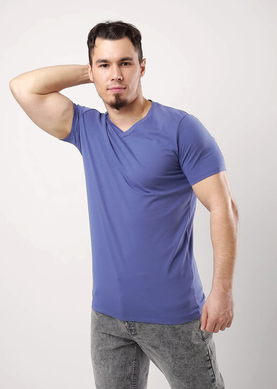 Фуфайка базовой посадки, v-образный вырез горловины, короткий рукав без манжет.