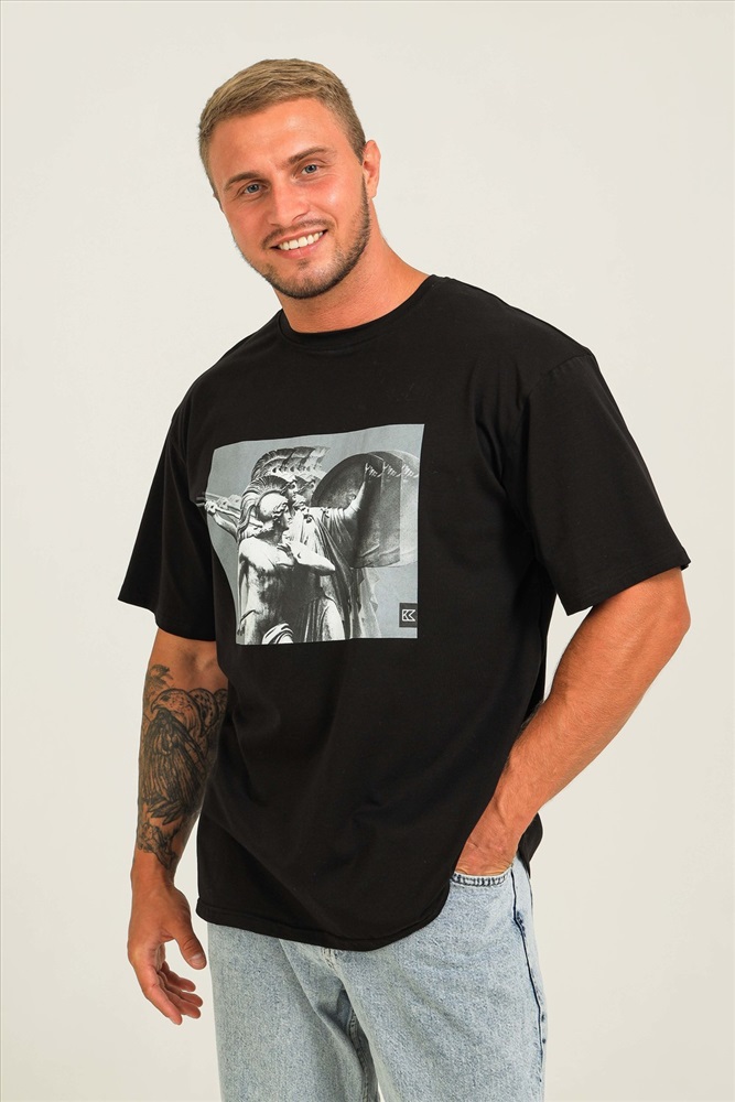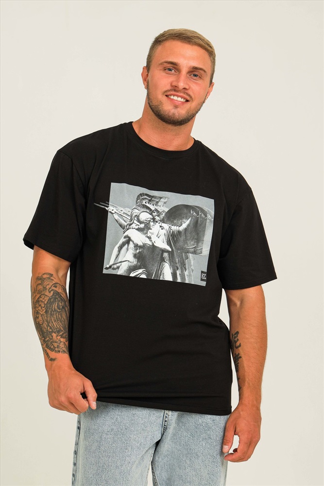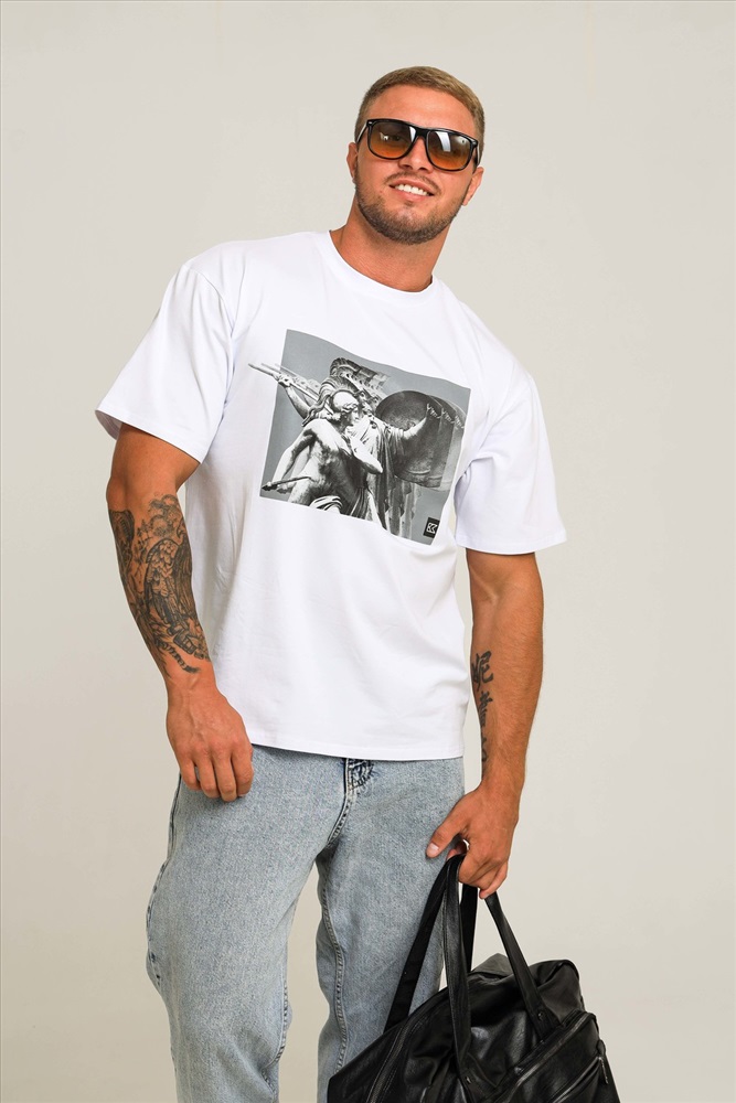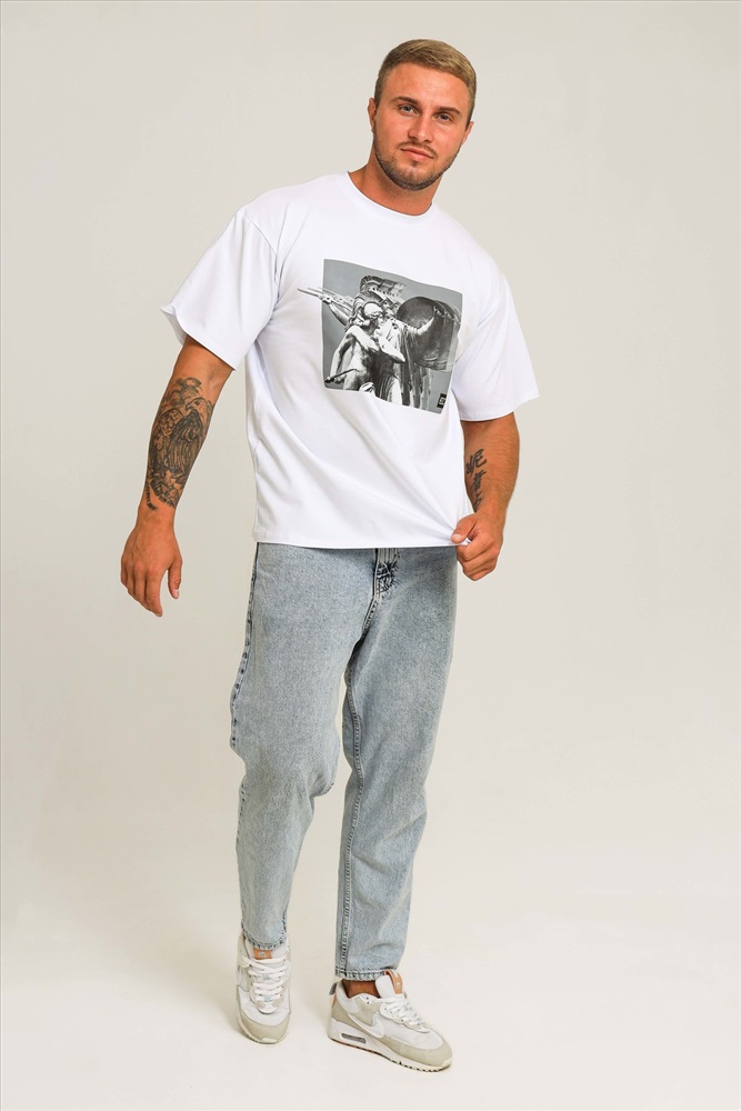 Представляем Вам стильную футболку прямого кроя для мужчин! Футболка выполнена в стиле OverSize с коротким рукавом - это классический стиль и комфорт в одном. Модель изготовлена из качественного хлопкового полотна пенье - которое не склонно к пилингованию (образованию катышек), а также имеет гладкую, шелковистую поверхность, приятную на ощупь, что обеспечивает комфорт и долговечность изделия. Спинка горловины усилена окантовочной лентой. Плотная износостойкая двухслойная печать гарантирует долговечность изображения.
