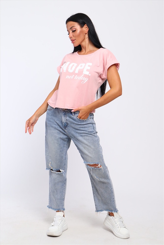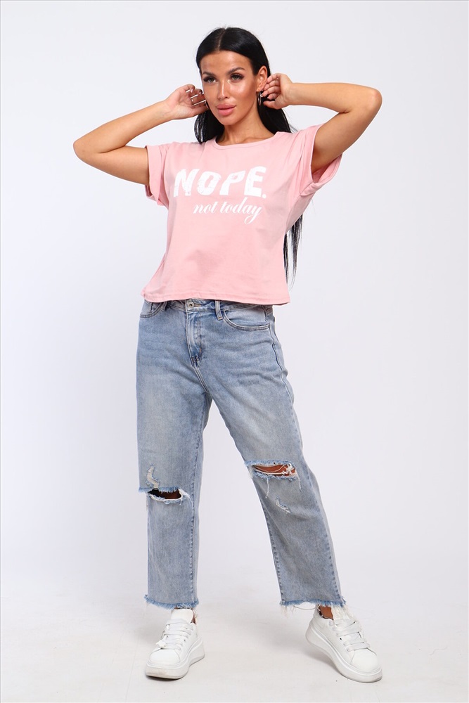 Футболка женская укороченная со спущенным плечом, округлым вырезом горловины и широкими рукавами с подворотами. Свободный крой и оригинальная надпись Nope делает ее актуальной в любом сезоне лето, осень. Современный дизайн и оригинальный крой подойдет для девушек подростков и более взрослой аудитории. Состоит из 100% хлопка (кулирка).