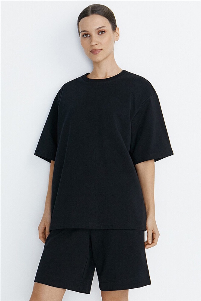 ID товара: 1073264 Состав: 95% Хлопок, 5% Эластан Сезон: Весна/Лето Длина: Средняя Фасон: Оверсайз Рукав: Короткий Вырез горловины: Округлый Рисунок: нет Основная ткань: Хлопок Стиль: Спортивный Страна бренда: Италия Страна производства: Китай Женская футболка OVERSIZE с коротким спущенным рукавом и круглым вырезом. Горловина обработана обтачкой из трикотажного материала кашкорсе. Выполнена из высококачественного двухниточного футера. В составе трикотажного материала мягкий хлопок, который отлично пропускает воздух, приятно ощущается на теле и подходит для нежной и чувствительной кожи. Добавление эластана обеспечивает сохранение формы. Стильная свободная футболка для создания повседневных образов для дома, отдыха и городских выходов. Комментарии к товару