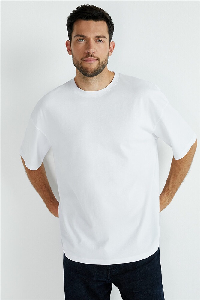ID товара: 1196389 Состав: 100% Хлопок Сезон: Демисезон Длина: Средняя Фасон: Свободный Рукав: короткие Вырез горловины: Округлый Основная ткань: Хлопок Стиль: Базовый Страна бренда: Италия Страна производства: Китай Мужская футболка OVERSIZE свободного кроя с удлиненной линией плеча и коротким рукавом. Круглая горловина выполнена из трикотажного материала рибана в стиле «английская резинка». Длина изделия чуть ниже линии бедер. Футболка изготовлена из мягкого хлопка, который обладает высокой воздухопроницаемостью, приятно ощущается на теле и подходит даже для чувствительной и нежной кожи. Низ изделия и рукава аккуратно обработаны с использованием плоскошовной технологии, что обеспечивает дополнительный комфорт. Современный свободный силуэт и продуманные детали делают эту футболку универсальной основой для стильных, расслабленных и актуальных образов. Комментарии к товару