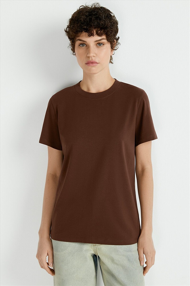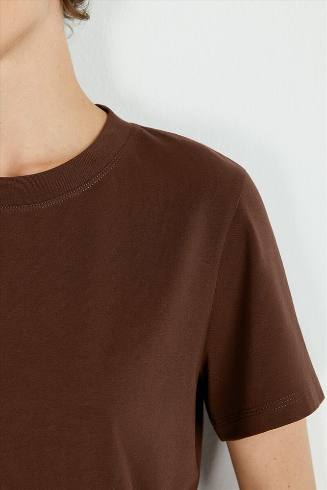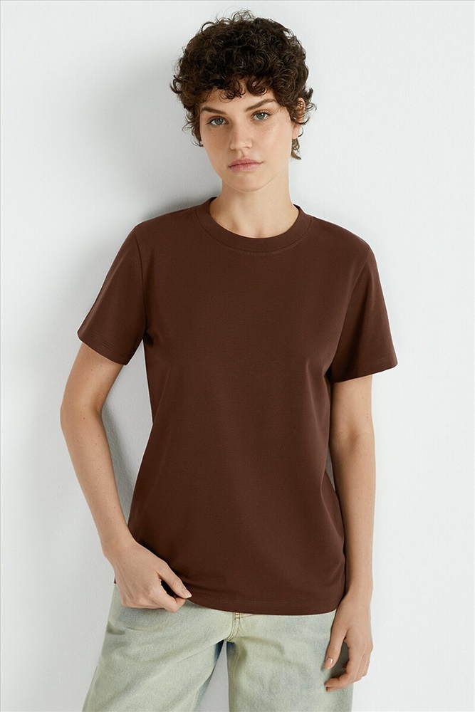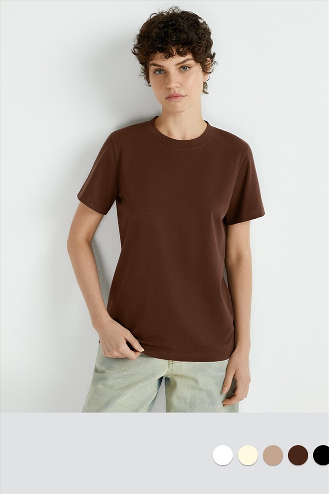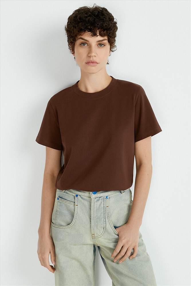 ID товара: 1197257 Состав: 92% Хлопок, 8% Эластан Сезон: Демисезон Длина: Средняя Фасон: Прямой Рукав: короткие Вырез горловины: Округлый Основная ткань: Хлопок Стиль: Базовый Страна бренда: Италия Страна производства: Китай Женская футболка прилегающего силуэта с коротким рукавом, округлой горловиной и длиной чуть выше линии бёдер. Изготовлена из мягкого хлопка, который обладает высокой воздухопроницаемостью, приятно ощущается на теле и подходит даже для чувствительной и нежной кожи. Низ изделия и рукава деликатно обработаны с использованием плоскошовной технологии, что обеспечивает дополнительный комфорт. Декоративная строчка добавляет утончённости и визуальной завершённости. Современная база с акцентом на комфорт и эстетику: лаконичный силуэт легко впишется в городской гардероб, дополняя как расслабленные, так и выверенные образы с актуальным звучанием. Комментарии к товару