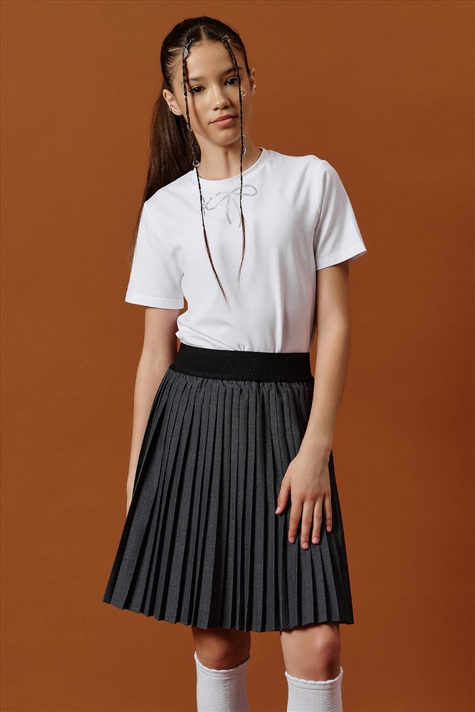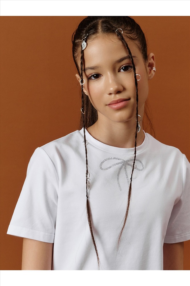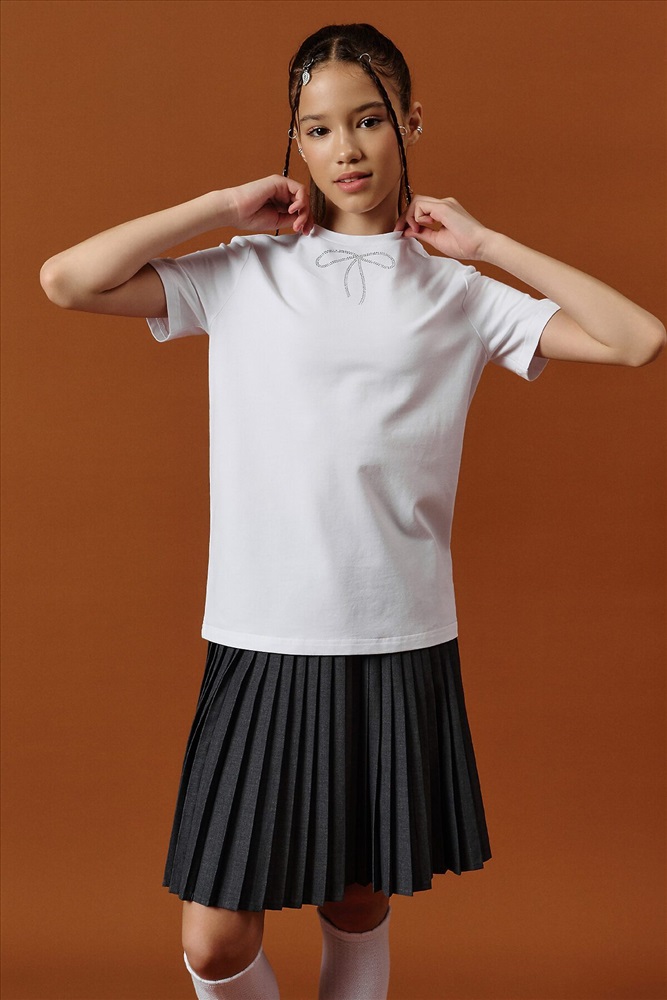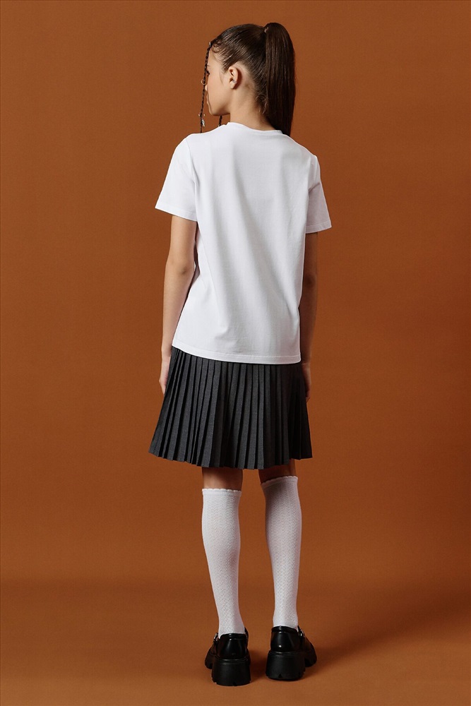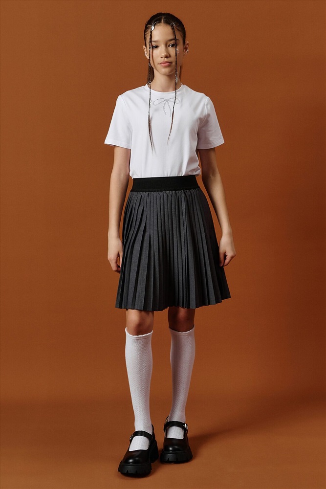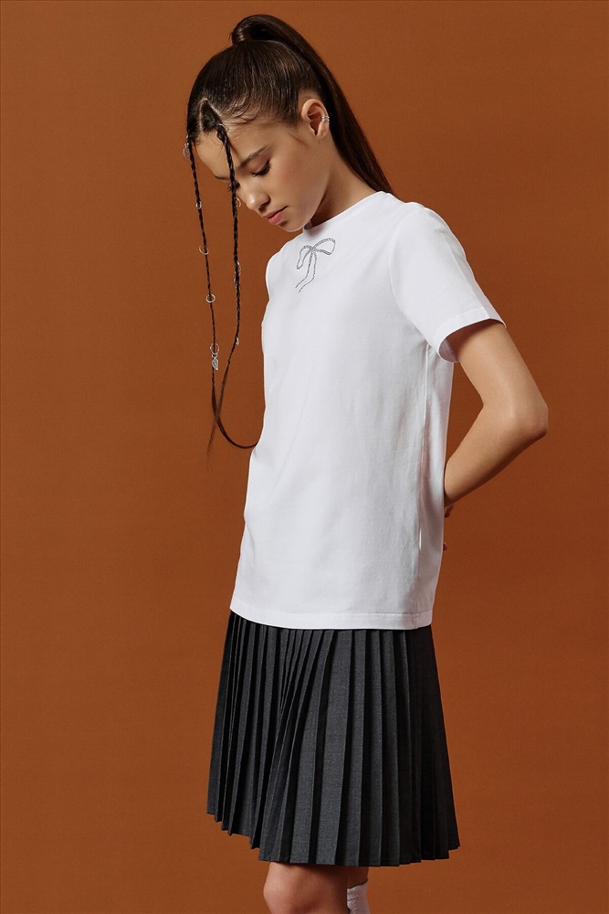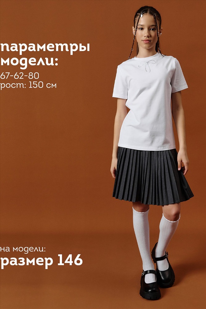 Страна производства: Китай Идеальный выбор для школы и повседневной носки! Базовый джемпер прямого кроя с коротким рукавом выполнен из мягкого, эластичного трикотажа — ткань приятна к телу, не сковывает движения и хорошо держит форму. Благодаря продуманному крою и аккуратной посадке, футболка комфортно сидит даже при активной активности в течение дня. Детали дизайна: Элегантный пайпинг по горловине придаёт аккуратный и законченный вид. На передней части — нежная аппликация из сверкающих страз: ненавязчивый, но стильный акцент, который понравится любой девочке. Почему это удобно: Материал не требует сложного ухода — легко стирается, быстро сохнет и не теряет цвет. Универсальная модель: подходит под школьную форму, джинсы, юбки и даже под сарафан. Подойдёт как для уроков, так и для прогулок после школы. Джемпер станет любимой вещью в гардеробе вашей дочки — практичный, красивый и удобный. Используйте таблицу размеров на фотографии, чтобы выбрать подходящий размер. Обратите внимание, что цвет товара на экране вашего устройства может отличаться от реального.