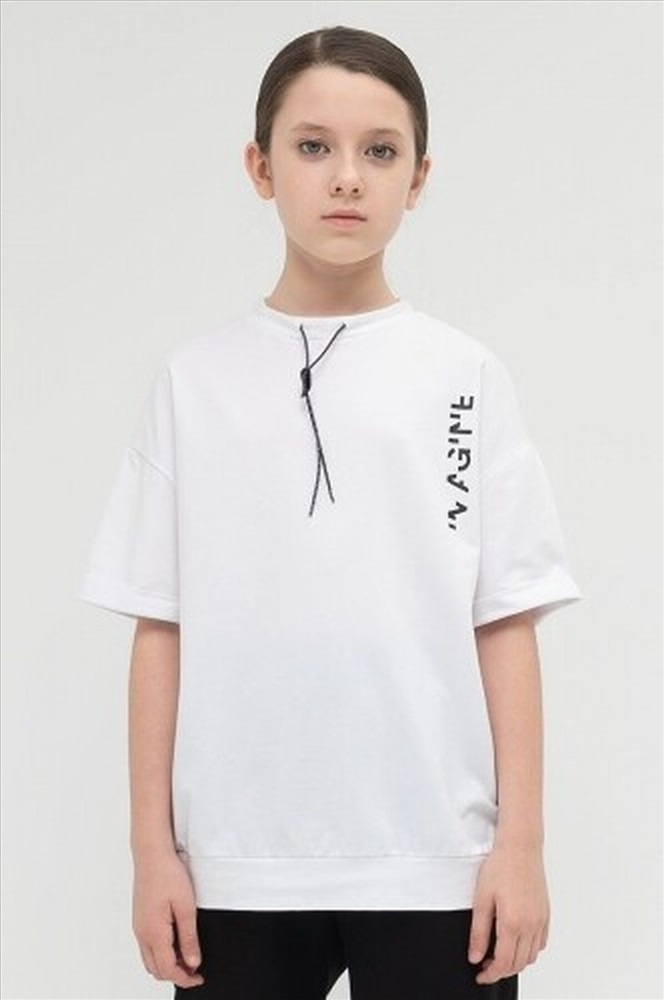 Страна производства: Китай Футболка школьная. Унисекс. Прямой силуэт, спущенное плечо, свободный рукав не стесняют движения. А широкая горловина с эластичным шнуром и фиксатором легко отрегулирует объем. На переде минималистичный локальный принт Imagine (Воображай). Хлопковый трикотаж.