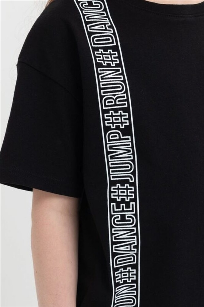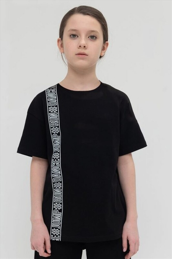 ID товара: 785738 Состав: 100% Хлопок Сезон: Весна/Лето Длина: Удлиненная Фасон: Прямой Рукав: Короткий Вырез горловины: Круглый Рисунок: Фантазийный Тип карманов: Без карманов Основная ткань: Хлопок Стиль: классический Страна бренда: Россия Страна производства: Китай Удобная футболка для девочки из 100% хлопка. Комфортная, дышащая ткань. Модный силуэт оверсайз, обеспечивает свободу движений. Подойдет для уроков физкультуры, повседневных школьных образов и просто погулять. Легко сочетается с классическими и спортивными брюками, джинсами, юбками, шортами, лосинами. Стильный акцент на передней части: принт #танцуй#прыгай#бегай (перевод) привлекает внимание и мотивирует. Комментарии к товару
