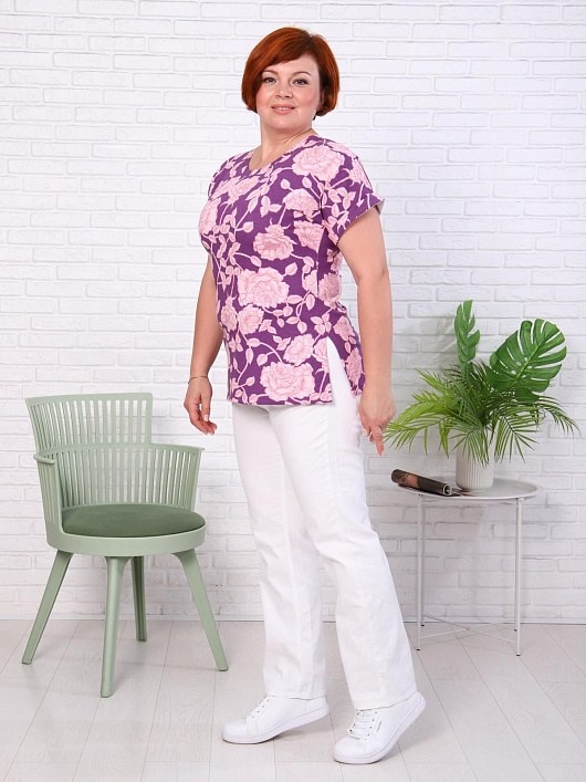 Расцветки: Лиловый Ткань: Футер 2-х нитка Состав: Хлопок 75%; полиэстер 20%; лайкра 5% Размеры: 46, 48