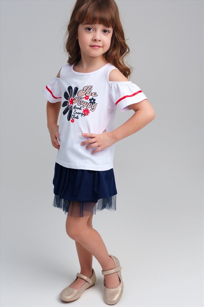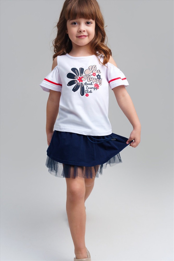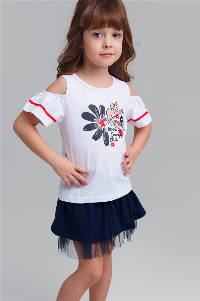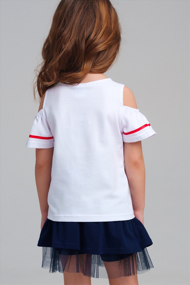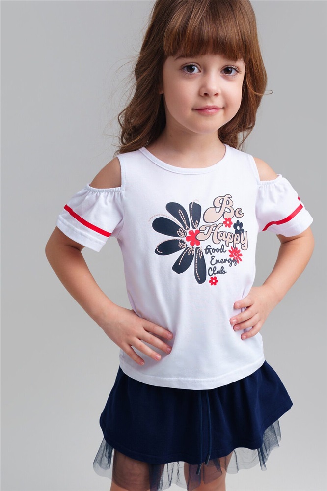 Футболка детская для девочки. Футболка из качественного и приятного на ощупь трикотажа джерси с высоким содержанием хлопка 95%. Благодаря наличию эластана в составе ткани изделие проще в уходе и держит форму. Модель выполнена из качественного и приятного на ощупь трикотажа.
