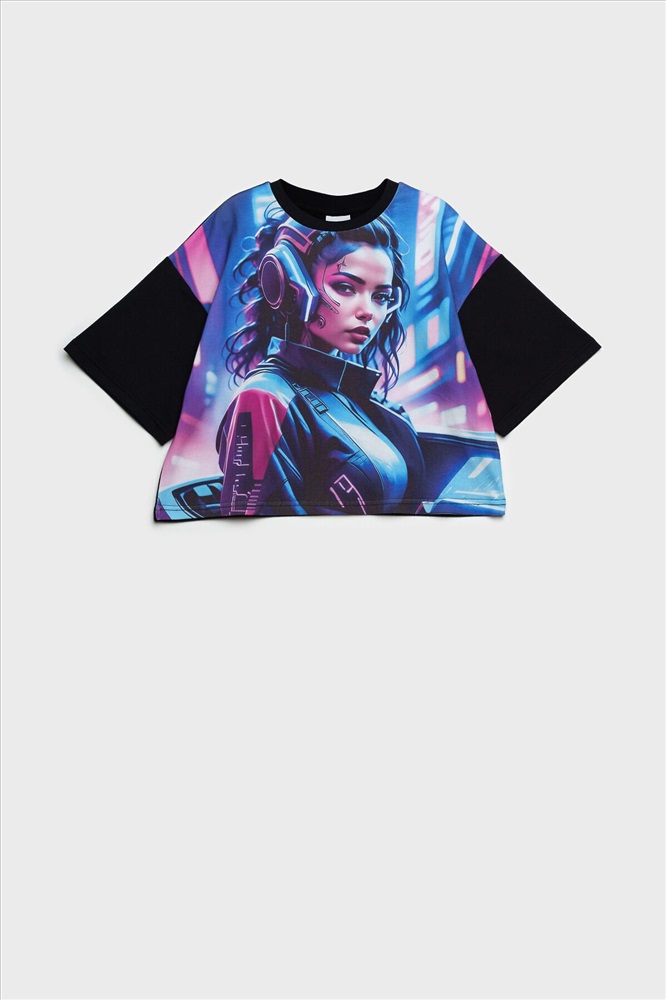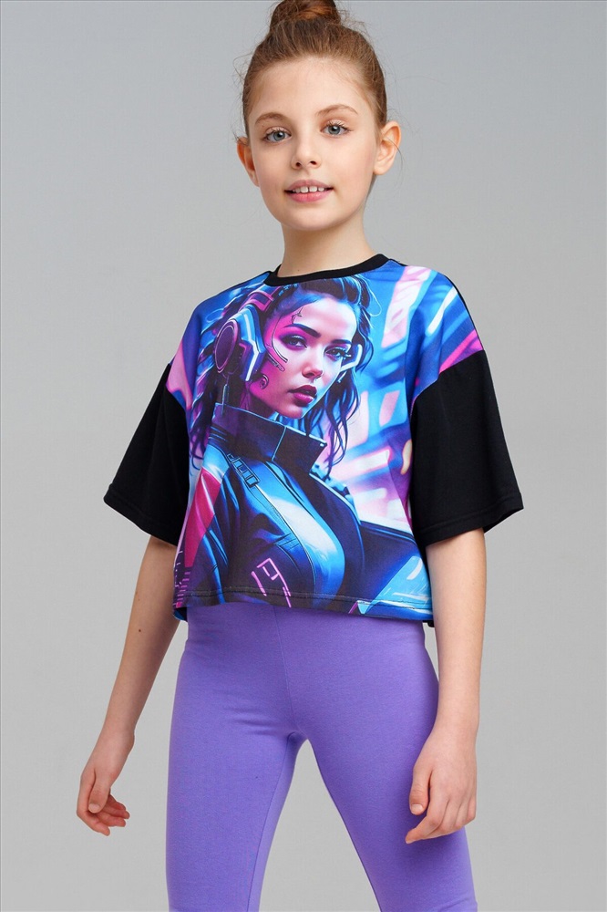 Производитель: PLAYTODAY ID товара: 1121606 Состав: 95% Хлопок, 5% Эластан Сезон: Весна/Лето Длина: Укороченная Фасон: Свободный Рукав: короткие Вырез горловины: Округлый Рисунок: Девушка Декоративные элементы: Принт Основная ткань: Хлопок Стиль: Повседневный Страна бренда: Германия Страна производства: Китай
