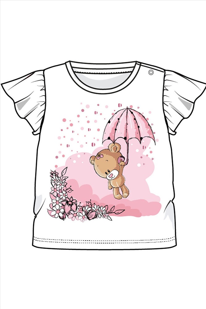 Футболка из качественного и приятного на ощупь трикотажа джерси. Высокое содержание хлопка 95%. Благодаря наличию эластана в составе ткани изделие проще в уходе и держит форму. На плече застёжка на кнопки.