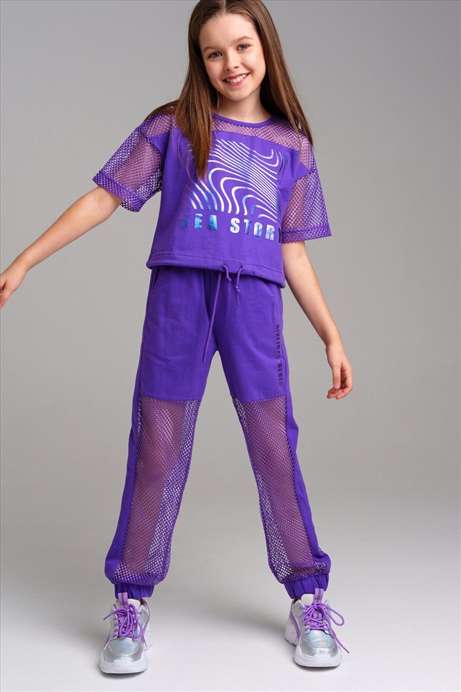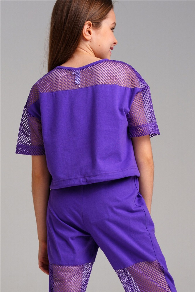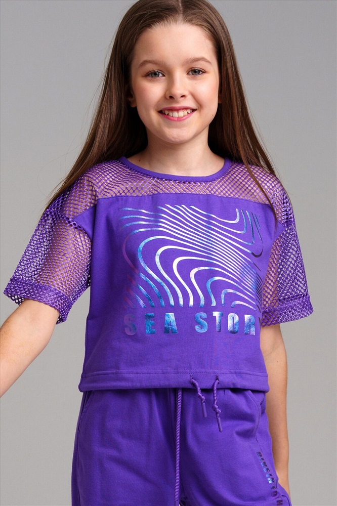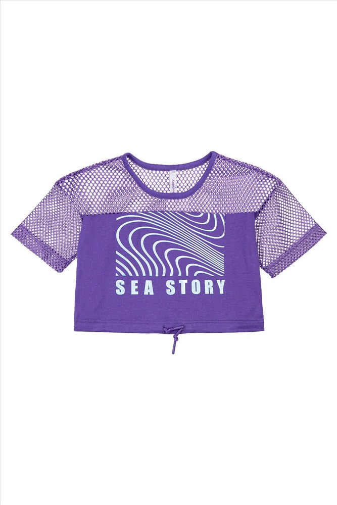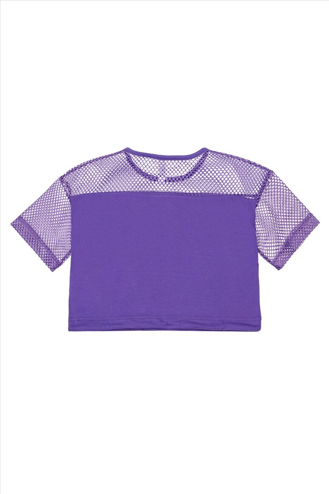Укороченная футболка oversize из качественного и приятного на ощупь трикотажа джерси и сетки. Высокое содержание хлопка 95%. Благодаря наличию эластана в составе ткани изделие проще в уходе и держит форму. По низу футболки утяжка шнурком.