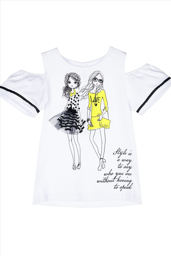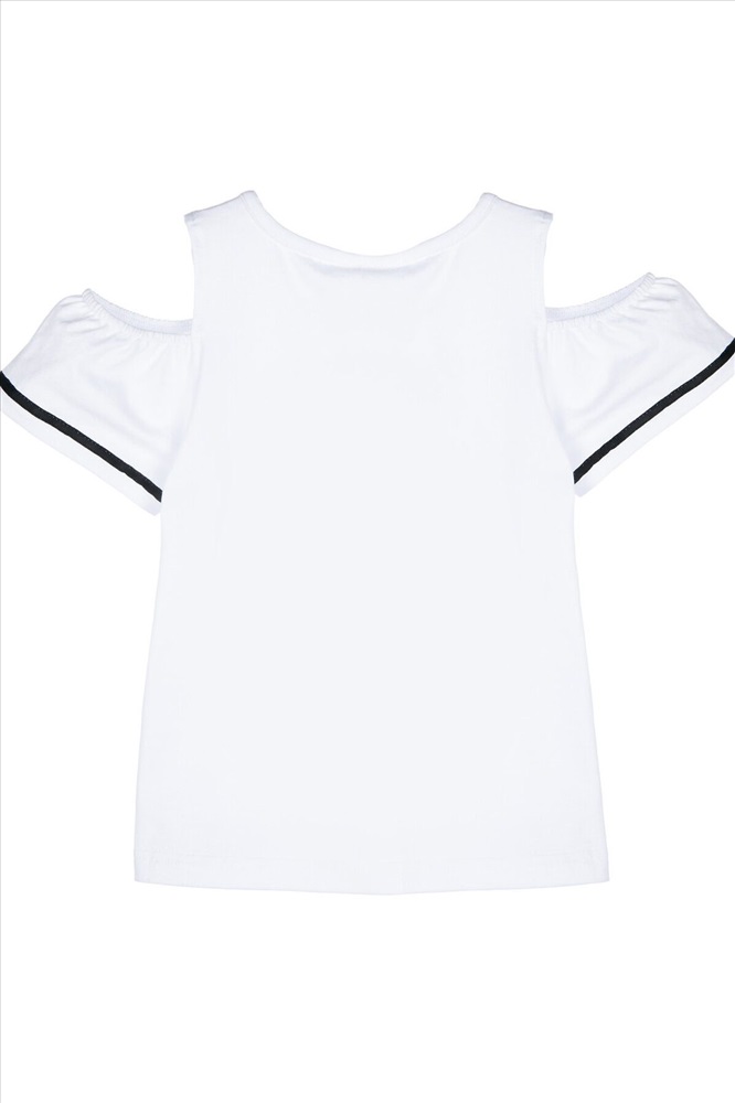 Футболка с открытыми плечами из качественного и приятного на ощупь трикотажа джерси. Высокое содержание хлопка 95%. Благодаря наличию эластана в составе ткани изделие проще в уходе и держит форму. Regular fit.