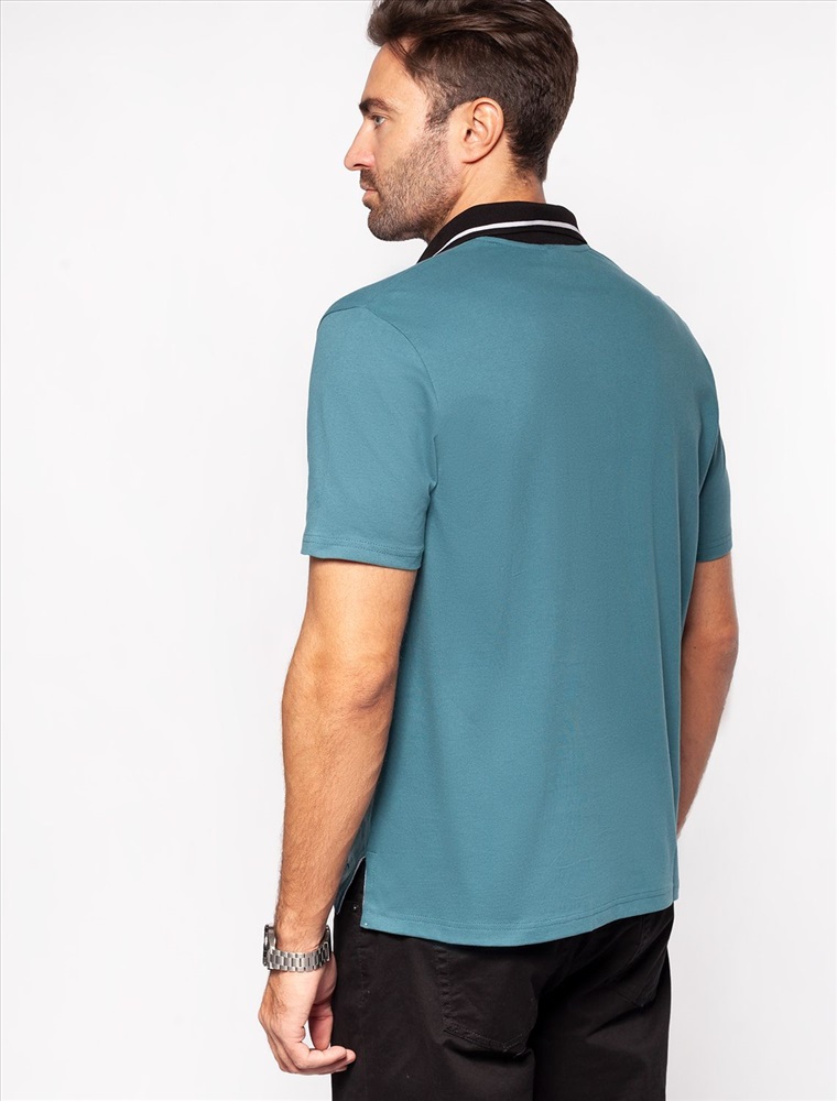 Прямое поло выполнено в оттенке полынь из премиального хлопка пике с характерной фактурой, которая обеспечивает эффективную циркуляцию воздуха. Деликатный акцент в модели выполнен в виде контрастного отложного воротника. Наличие эластана в составе изделия способствует эластичности и меньшей сминаемости. Внизу металлический логотип бренда.
