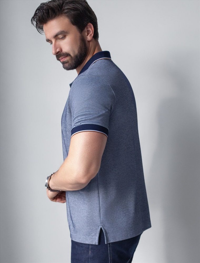 Стильная футболка поло с отложным воротником на пуговицах темно-синего цвета выполнена из полотна пике из двух оттенков нити, создающем эффект меланж. Мягкая и дышащая ткань обеспечивает комфорт в течение всего дня, позволяя коже дышать и поддерживать оптимальную воздухопроницаемость. Классический крой поло подойдет на разные комплекции фигуры, в том числе большие размеры, включая 58. Материал тянется, обеспечивает долговечность и сохраняет презентабельный внешний вид даже после многократных стирок.