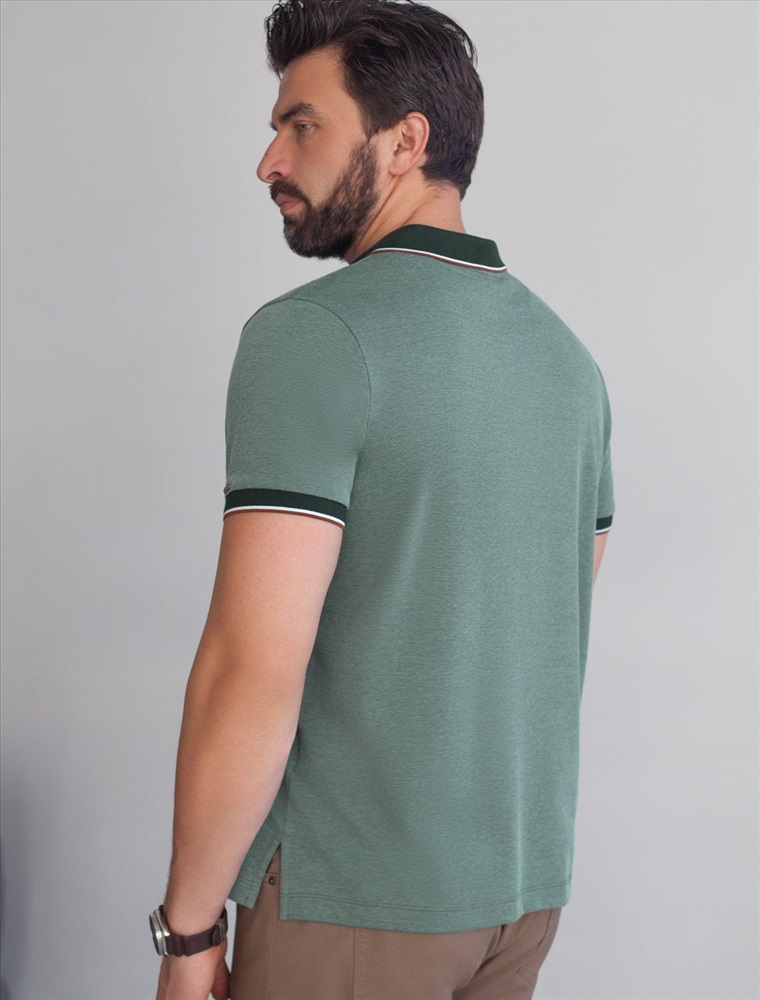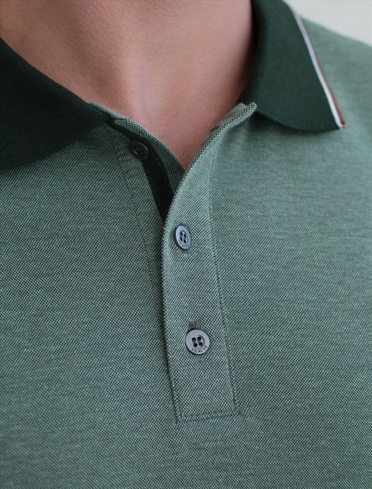 Стильная футболка поло с отложным воротником на пуговицах цвета хаки выполнена из полотна пике из двух оттенков нити, создающем эффект меланж. Мягкая и дышащая ткань обеспечивает комфорт в течение всего дня, позволяя коже дышать и поддерживать оптимальную воздухопроницаемость. Классический крой поло подойдет на разные комплекции фигуры, в том числе большие размеры, включая 58. Материал тянется, обеспечивает долговечность и сохраняет презентабельный внешний вид даже после многократных стирок.