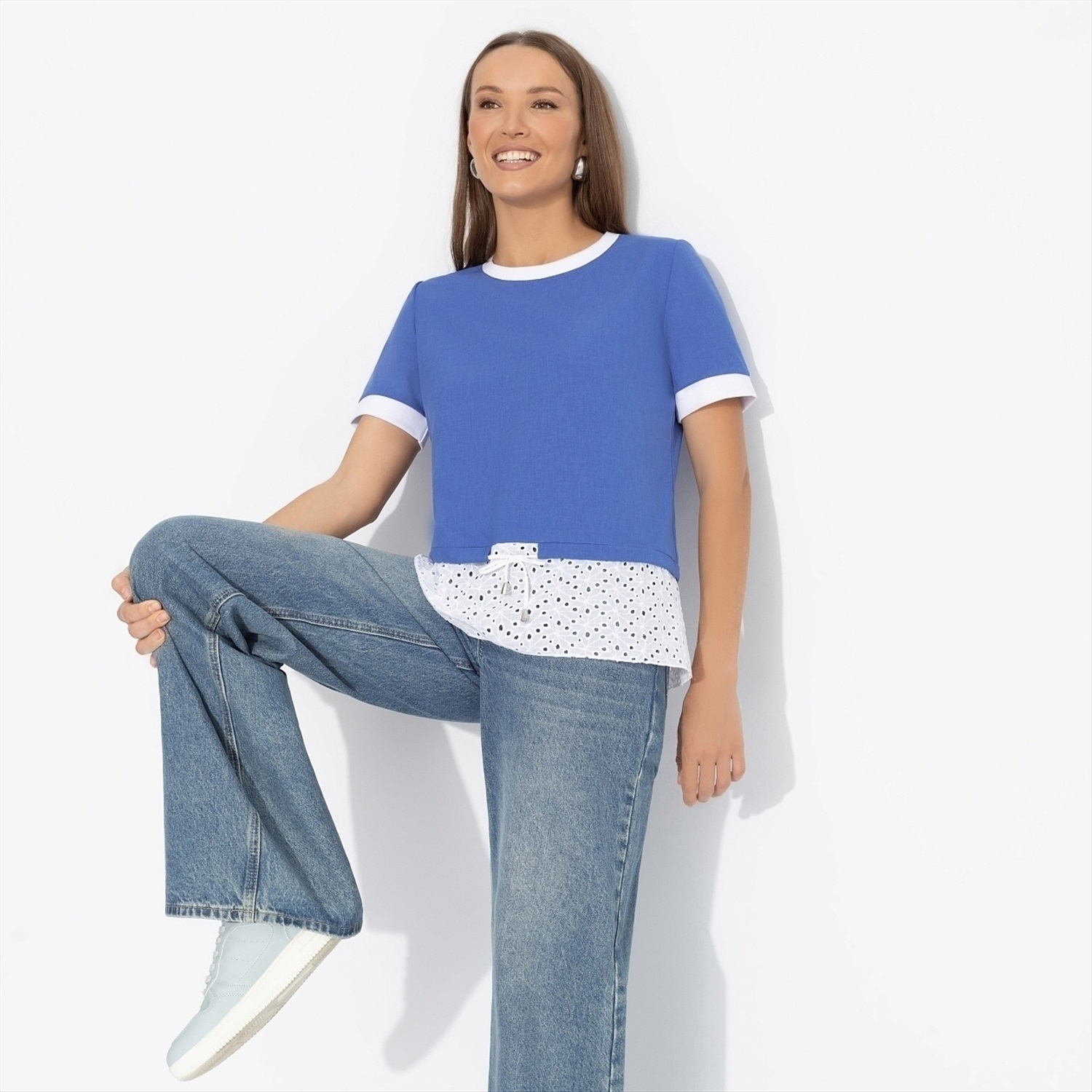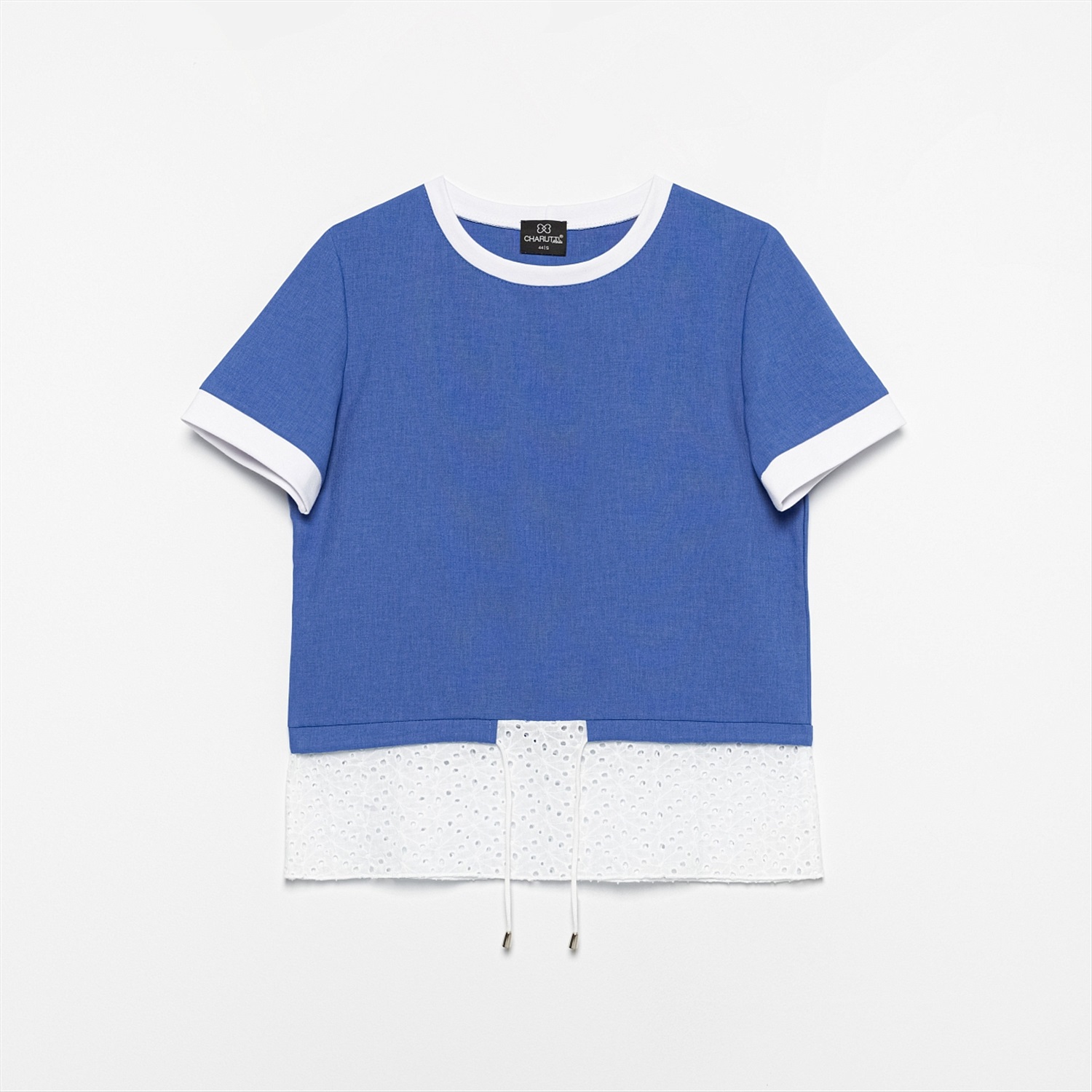 Футболка ЧАРУТТИ в цвете волны Средиземного моря создана для впечатлений. Она словно путешествие, где каждый штрих белого узора напоминает пену волн и свежий ветер в парусах. Надень её и отправляйся навстречу приключениям, прихватив с собой непревзойдённое чувство свободы. Футболка классического кроя. Комбинация нескольких видов материала. Есть кулиска с тонким шнурком. Подол выполнен из шитья.