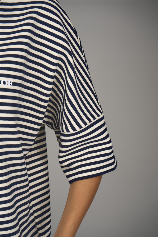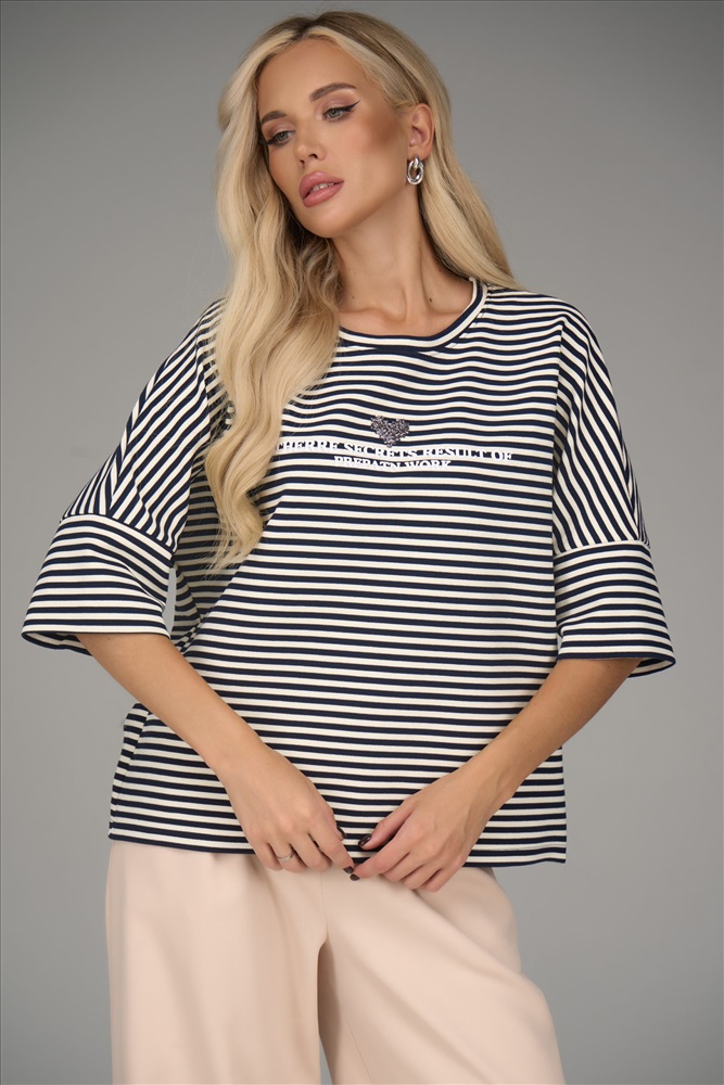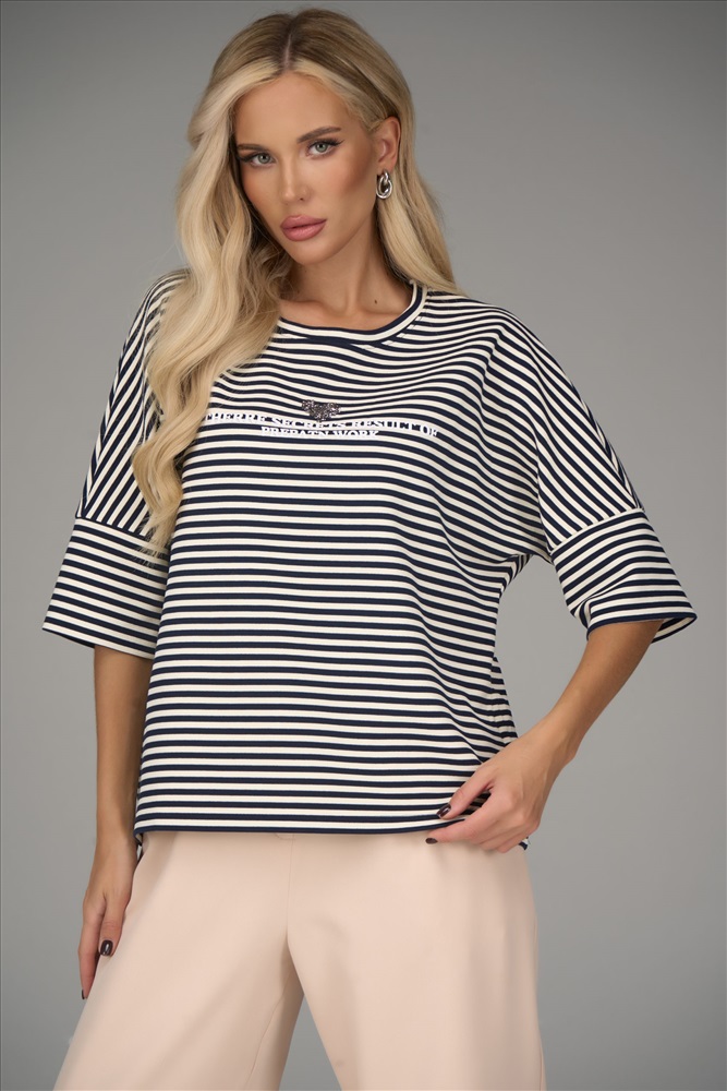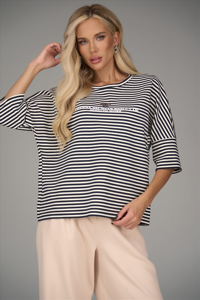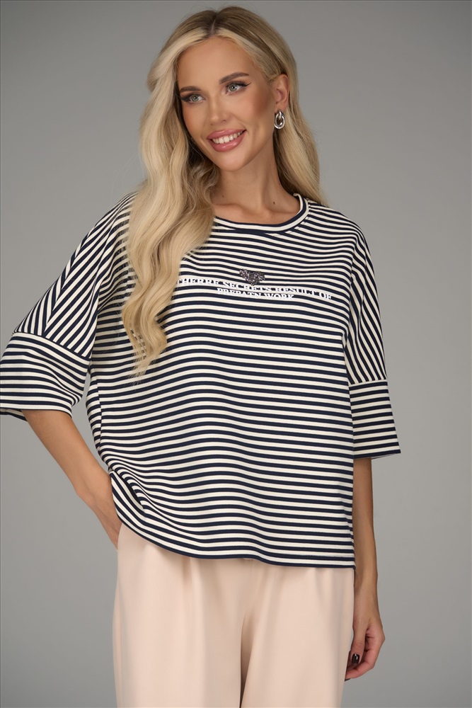 Состав: Хлопок – 100% Описание Футболка “Рина” станет основой для гардероба любого сезона и Вашим вдохновением создавать множество стильных образов на каждый день. Свободный крой для комфорта в течение всего дня Мягкая и дышащая ткань Классический полосатый принт, легко сочетать с джинсами или юбкой Идеальный выбор для повседневного образа с ноткой непринужденного шика.
