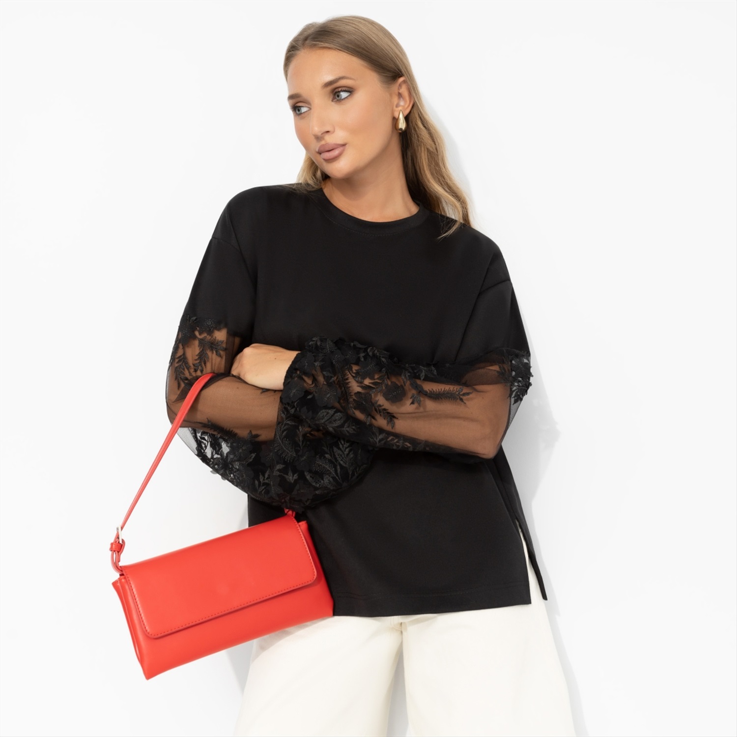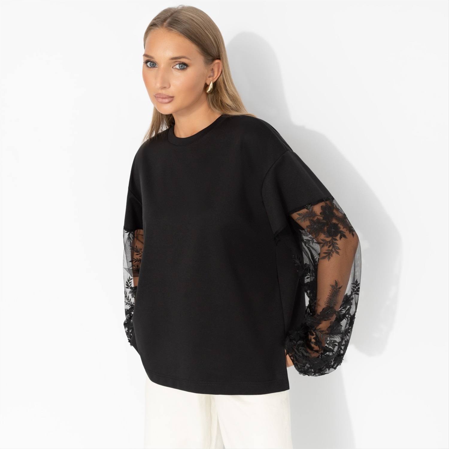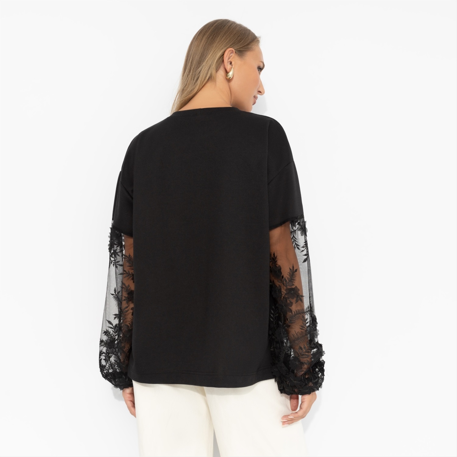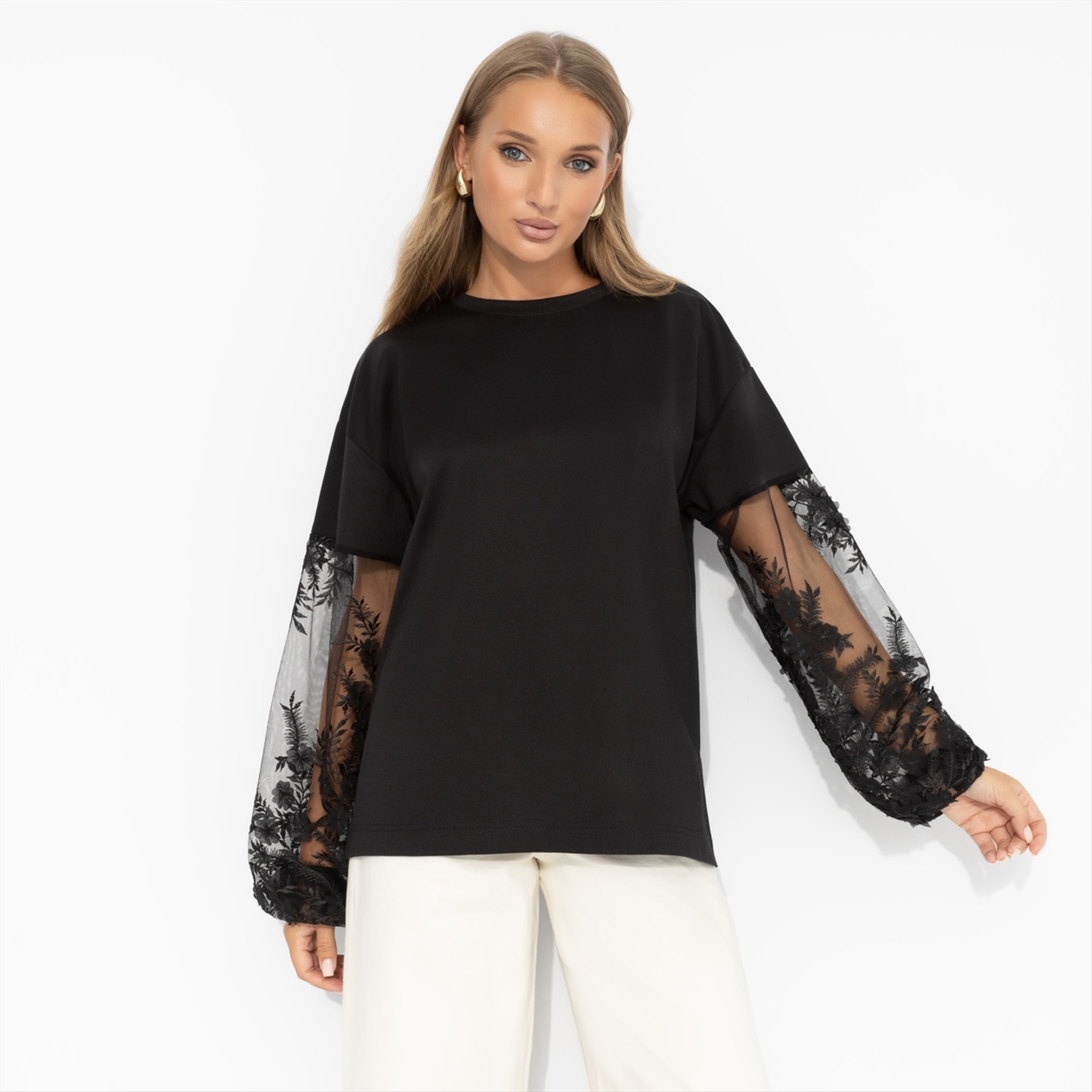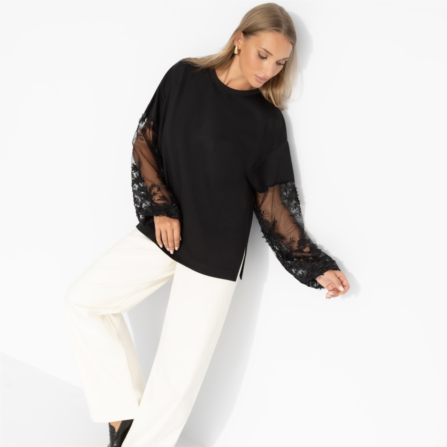 Футболка ЧАРУТТИ как идеальный баланс между бунтарским «свой пацан» и нежным настроением «девочка-девочка». Крой говорит о спокойной уверенности и непринужденности, словно позаимствованный из мужского гардероба. Но романтичные рукава с ажурным декором мгновенно смягчают образ, добавляя ему загадочности и изящества. В этом противоречии рождается ваш уникальный стиль. Футболка свободной посадки с длинными рукавами. Рукава оформлены объемным декором. Деликатные разрезы по бокам изделия. Футболка хорошо смотрится на любом типе фигуры.