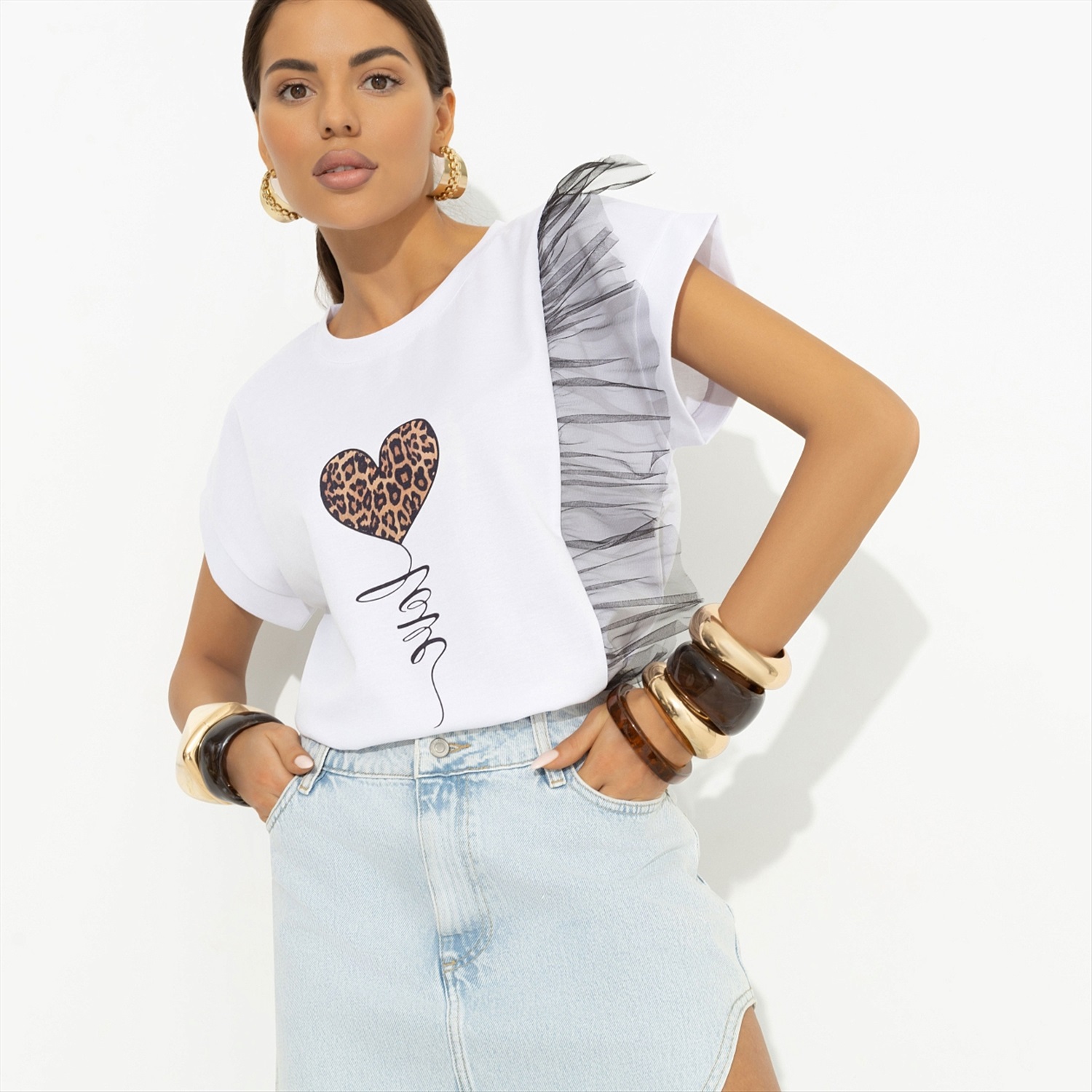 Морнинг рутин от CHARUTTI: проснуться без будильника, умыться, нанести тринадцать ступеней утреннего ухода и надеть футболку CHARUTTI, в которой легко можно провести весь день, чем бы вы не занимались. Футболка прямого силуэта из эластичной ткани. Отвороты на рукавах прошиты. Принт напечатан на ткани. Объемный асимметричный декор из сетки вшит.