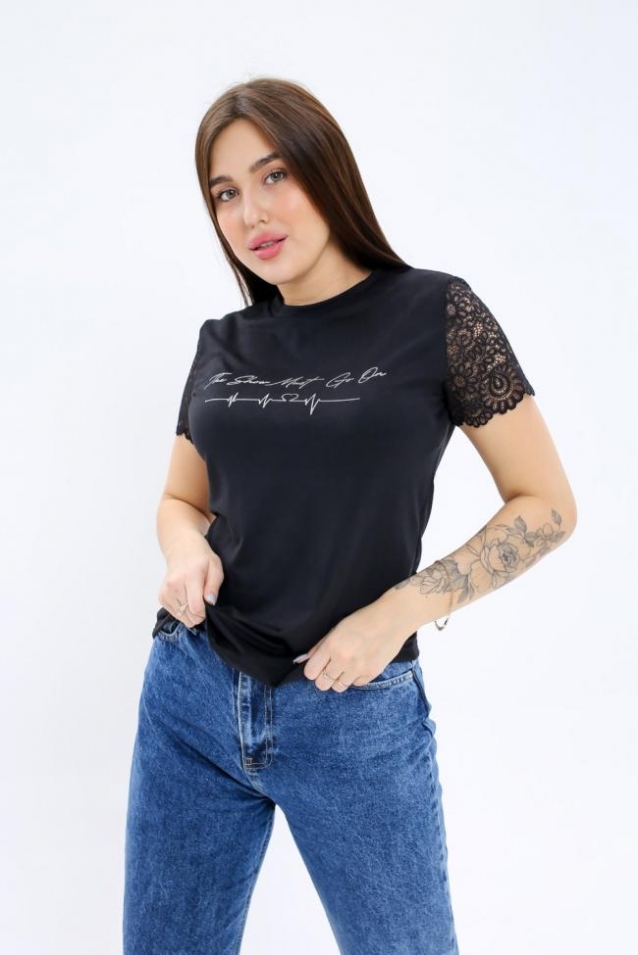 Просторная женская футболка из хлопка для тех, кто любит ощущать свободу во всём. Заботливо сшитая их нежнейшего эластичного трикотажа с кружевными рукавами, она не стесняет движений, тем самым добавляя нотку расслабленного шика. Лаконичный дизайн футболки с кружевом, подойдет для повседневной носки в качестве одежды для дома, сна, отдыха и на прогулку.