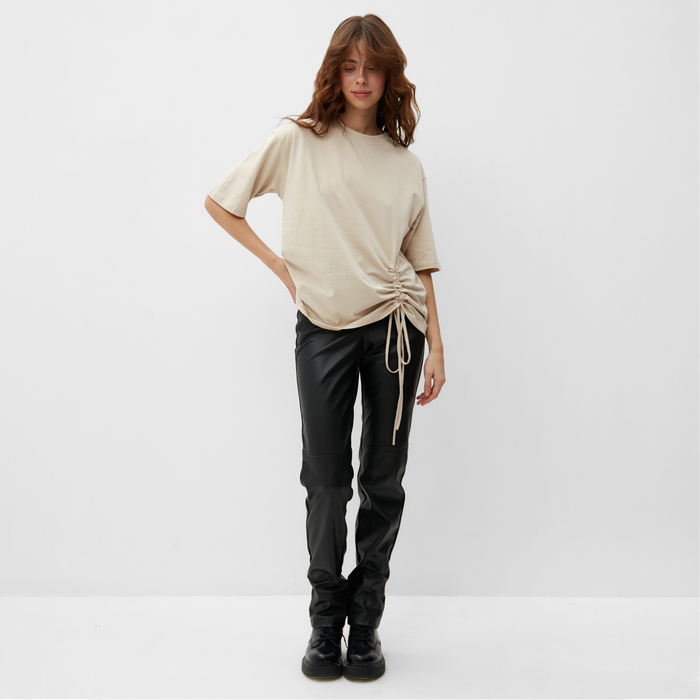 Габариты: 36 x 27 x 0,8 Страна: Россия В боксе: 45 шт Рекомендации по уходу: Бережный режим глажки, Не отбеливать, Деликатный режим отжима, Деликатная стирка при 30 °С Состав ткани: Хлопок, Эластан Фиксированная цена: Да Состав: Хлопок 95%, эластан 5% Материалы: хлопок, эластан Фасовка: по 1 шт Сертификат: ЕАС Цвет: Бежевый Для кого: Для женщины Назначение: Повседневная Ткань: Хлопковая ткань Рост, см: 170 - 175 Рост модели на фото, см: 170 Сезон: Всесезонный Тематика: Однотонная Длина рукава: 1/2 Вырез горловины: Круглый Декоративные элементы: Кулиска Покрой: Свободный Вид: Однотонная Параметры модели на фото (ОГ-ОТ-ОБ): 70-58-88 Комментарии к товару