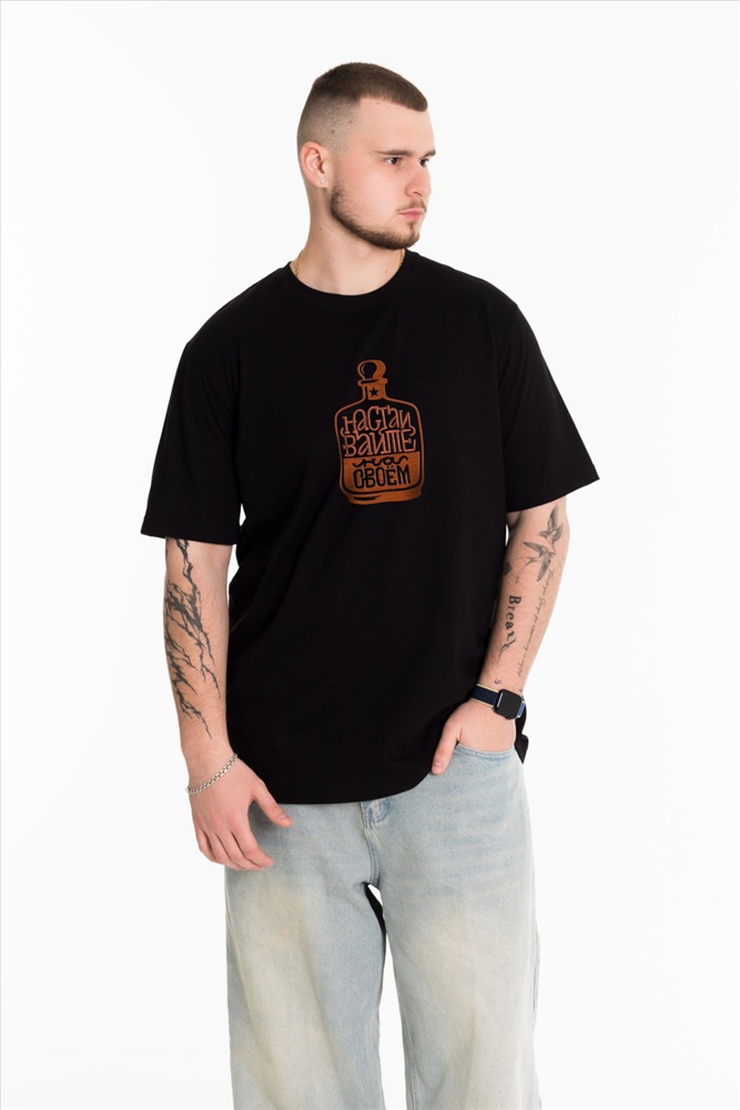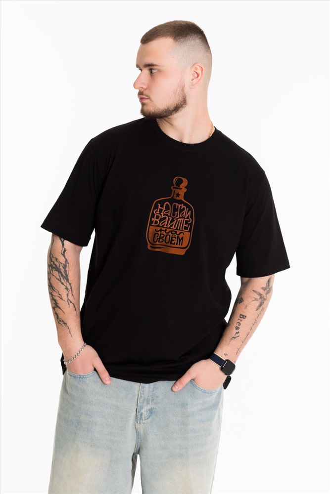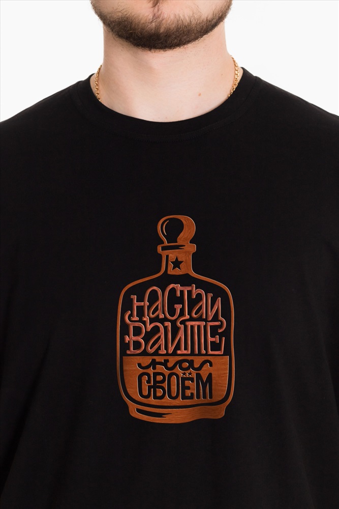 Сезон: Всесезонный Силуэт: Прямой Состав: Хлопок 100% Цвет Номенклатуры: черный Футболка с принтом Мужская футболка с принтом выполнена из однотонного х/б полотна с лайкрой. Рукав короткий, втачной, горловина имеет круглый вырез. Комментарии к товару