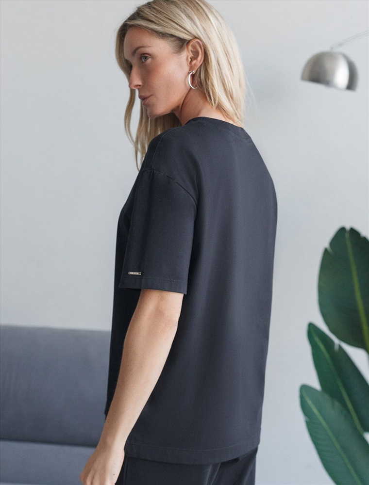 Свободный крой футболки дарит удобство и не стесняет движений, что делает ее идеальной для повседневной носки или активного отдыха, подчеркивает современный взгляд на моду. На рукаве металлический логотип бренда. Подойдет девушкам и женщинам на любую фигуру, вы будете чувствовать себя в ней уверенно и комфортно. Отлично впишется в гардероб благодаря универсальному дизайну, который легко сочетать с джинсами, шортами или спортивными брюками.