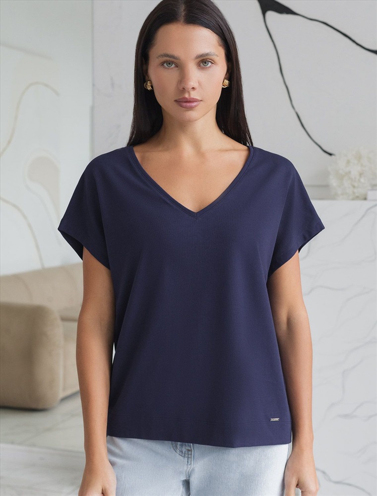 Стильная свободная футболка темно-синего цвета с выразительным V-вырезом создана для девушек и женщин, которые ценят комфорт и натуральность. Прямой крой обеспечивают непревзойденную легкость в теплую и жаркую погоду, позволяя телу дышать. Натуральный хлопок премиального качества — отличается дышащими свойствами и высокой износостойкостью, подходит для самой чувствительной кожи. V вырез гармонично подчеркивает линию шеи, такой вырез визуально удлиняет силуэт, подчеркивая достоинства фигуры. Цельнокроеный рукав гарантирует свободу движений и аккуратную посадку, что особенно актуально для активного образа жизни. Подойдет на большие размеры, комфортно сидит любой фигуре. Повседневная футболка сочетается с базовыми и акцентными элементами одежды, позволяет создавать различные повседневные или яркие образы.