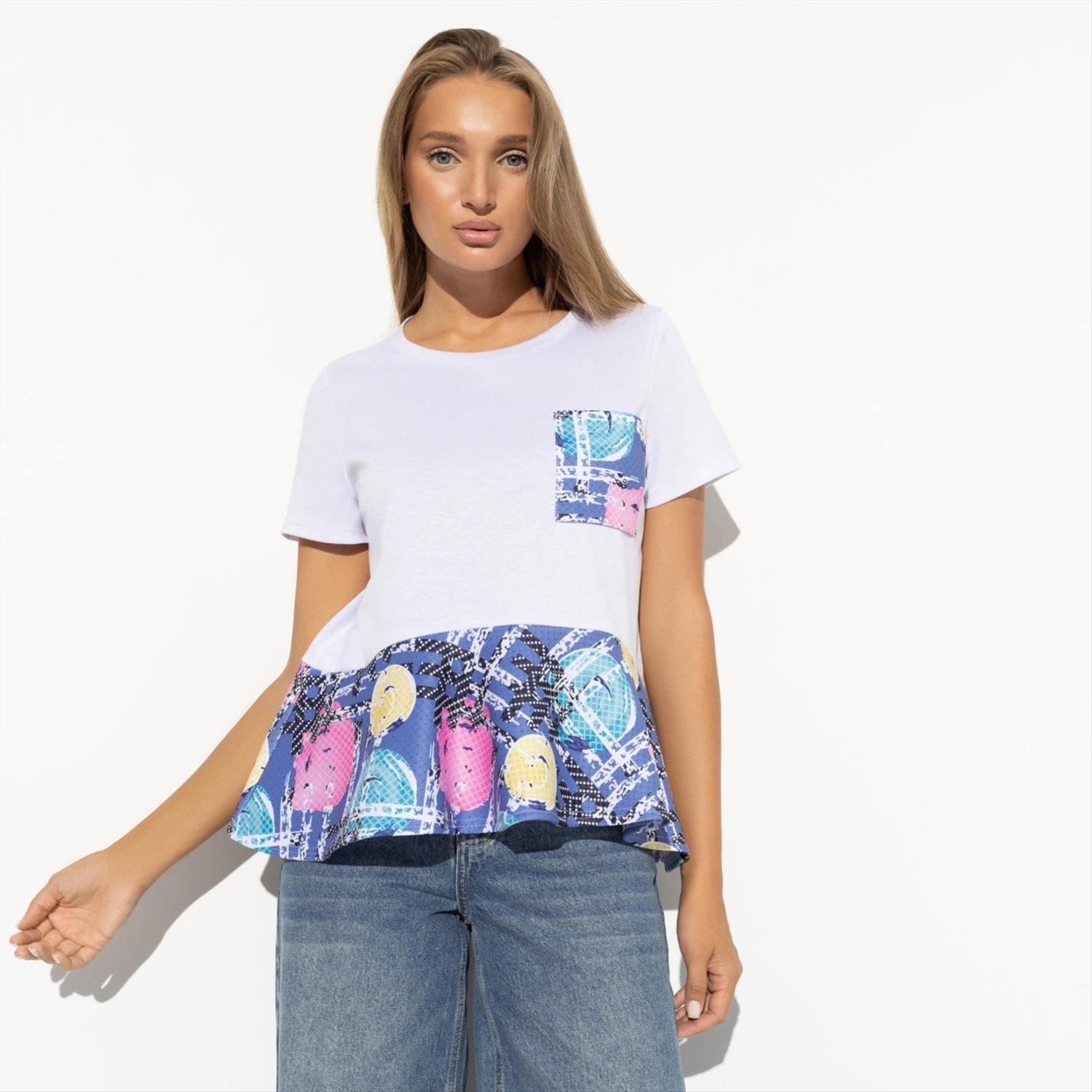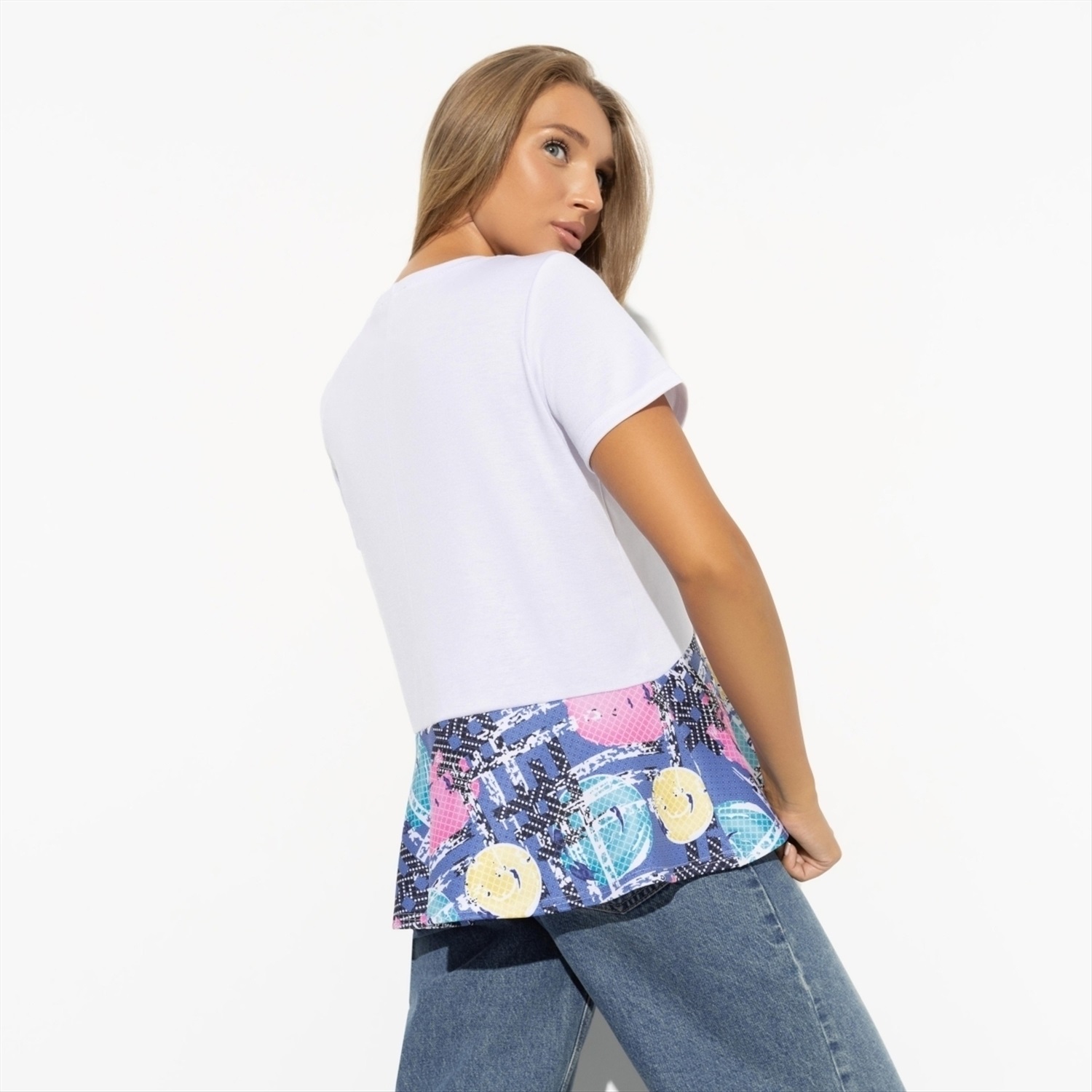 Состав: Трикотаж «милано» (65% п/э, 30% вискоза, 5% стрейч) Плотность ткани: Средняя Тип ткани: Трикотаж Вид застежки: Нет Дополнительный цвет ткани: Разноцветный Карманы: Накладные Основной цвет ткани: Белый Отрезная талия: Есть Подклад: Нет Резинка по талии: Нет Рисунок/раппорт: Нет, все изделия идентичны Сезон: Круглогодичный Помните, как кропотливо вырезали бумажных куколок и крепили на неё такие же бумажные юбки и футболки. Настоящая модная медитация. С таким же умиротворением мы сейчас красуемся перед зеркалом, надевая на себя не бумажную, а самую настоящую одежду. Футболка свободного кроя. Карман из контрастной ткани вшит. Футболка «Мой образ» — это идеальное сочетание стиля и комфорта, теперь доступное оптом для вашего бизнеса. Изготовленная из трикотажа «милано», она состоит из 65% полиэстера, 30% вискозы и 5% стрейча, что обеспечивает долговечность и комфорт в носке. Эта футболка свободного кроя подходит для любого гардероба, а контрастный карман добавляет оригинальности и уникальности вашему образу. Наши футболки — это не просто одежда, а настоящее произведение искусства, созданное с любовью и вниманием к деталям. Каждый шов, каждая деталь продуманы до мелочей, чтобы вы могли предложить своим клиентам лучшее. Оптом закупив футболки «Мой образ», вы делаете инвестицию в качество и стиль, которые ваши покупатели обязательно оценят. Футболка «Мой образ» прекрасно подойдет для различных ситуаций — от повседневной носки до создания стильных образов для вечерних прогулок. Высокое качество материалов и крой обеспечивают долговечность и комфорт, что особенно важно для оптовых закупок. Ваши клиенты будут довольны и вернутся за покупками снова. Футболка «Мой образ» доступна для оптовых закупок, что делает её отличным выбором для любого магазина, стремящегося предложить своим клиентам стильные и качественные вещи. Закажите оптовую партию и убедитесь в высоком качестве и популярности этой модели среди ваших покупателей. Комментарии к товару