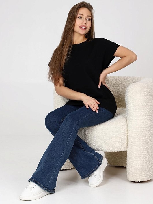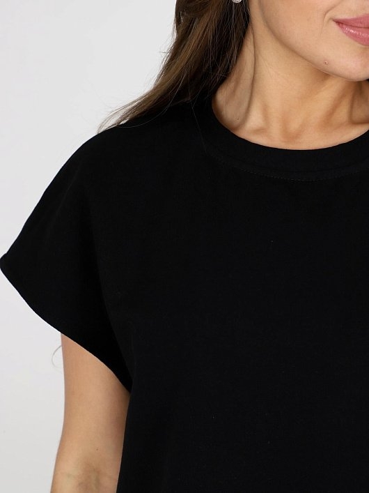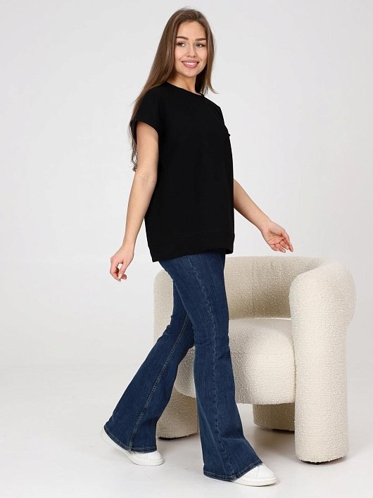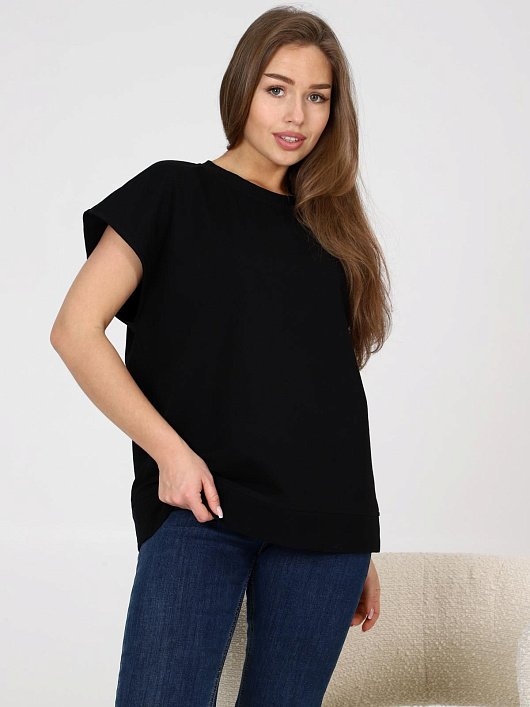 Футболка женская из футера с лайкрой свободного силуэта, круглым вырезом горловины, цельнокроеными короткими рукавами. Комментарии к товару