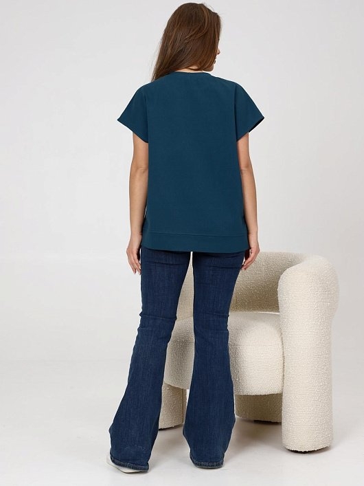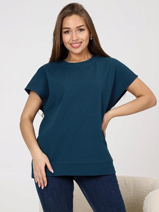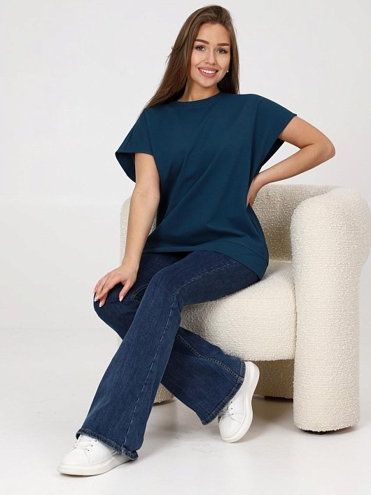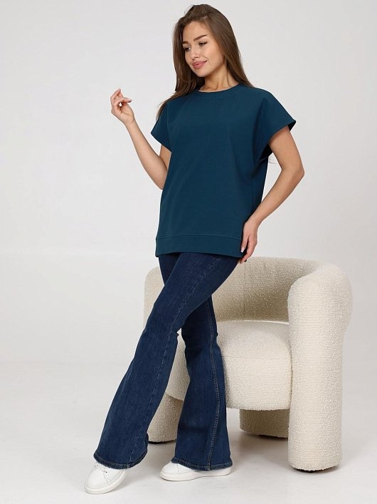 Футболка женская из футера с лайкрой свободного силуэта, круглым вырезом горловины, цельнокроеными короткими рукавами.