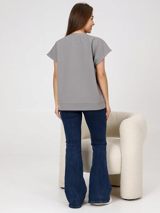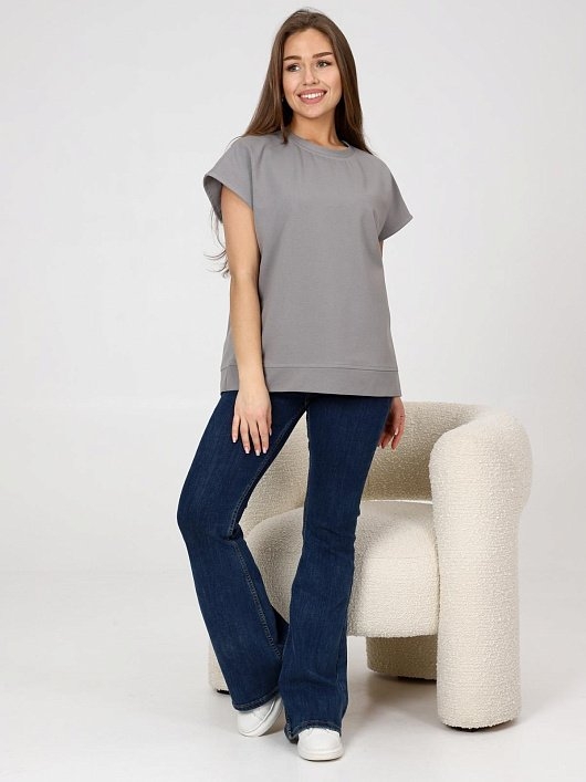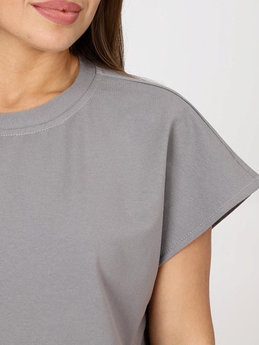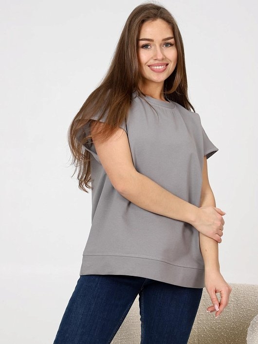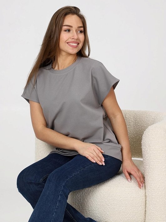 Футболка женская из футера с лайкрой свободного силуэта, круглым вырезом горловины, цельнокроеными короткими рукавами.