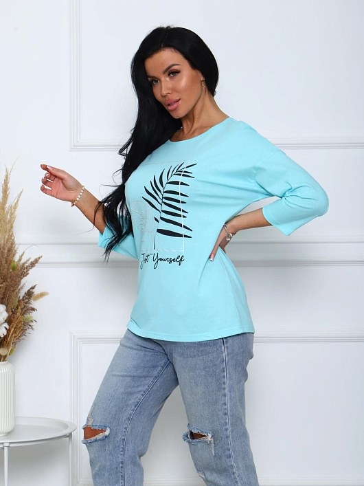 Расцветки: Бирюза Ткань: Кулирка Состав: 100% хлопок Размеры: 50, 52, 54, 56, 58, 60