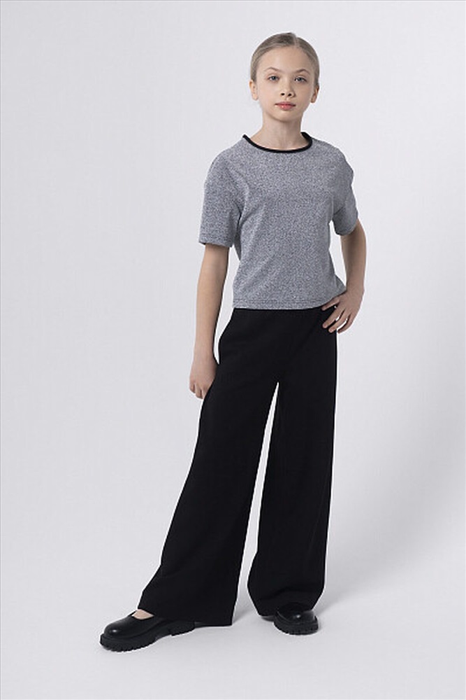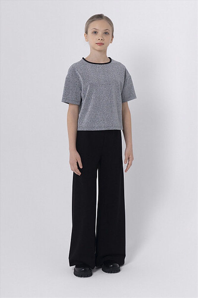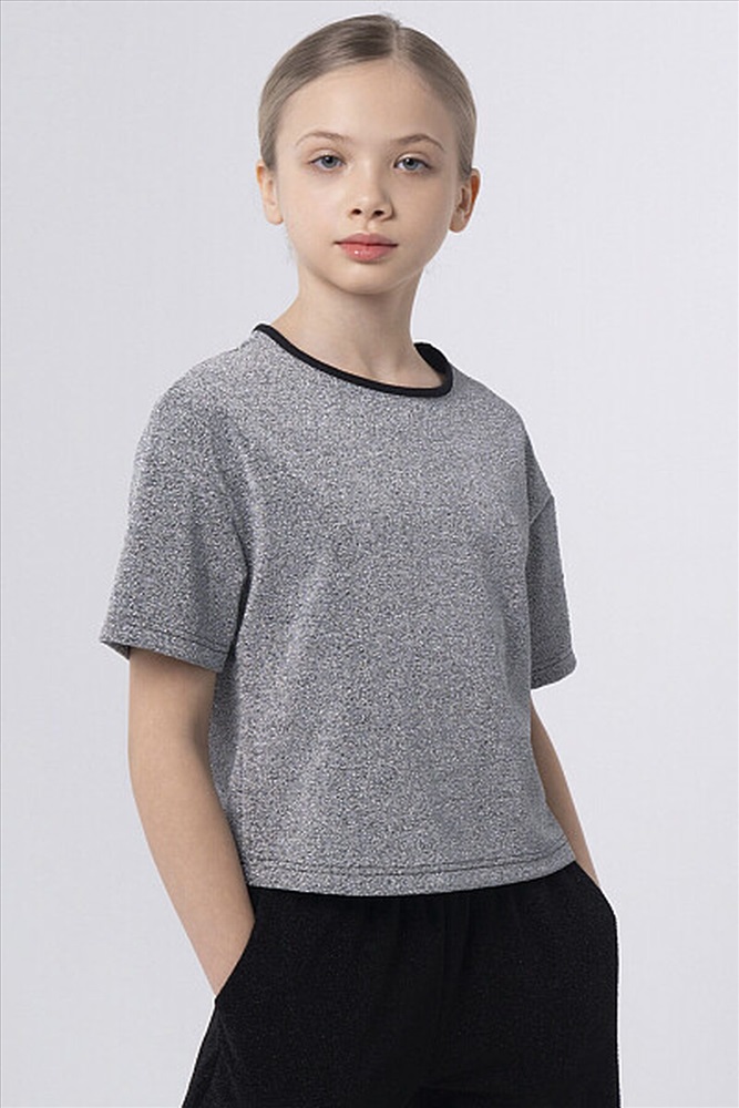 Страна производства: Россия Стильная укороченная футболка из серебристой мерцающей ткани станет ярким акцентом в образе. Контрастная горловина добавляет современный спортивный штрих и подчёркивает дизайн. Идеально сочетается с брюками из праздничной коллекции SMENA.