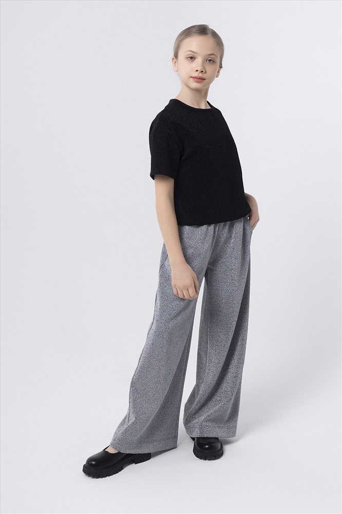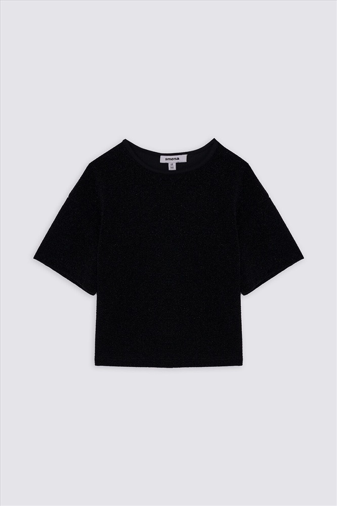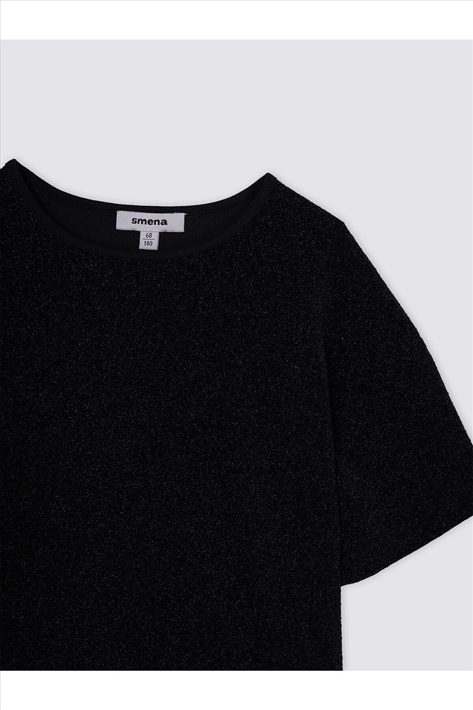 Модная укороченная футболка из чёрной мерцающей ткани — стильный выбор для особых случаев и повседневных образов. Лаконичный крой подчёркивает силуэт, а лёгкий блеск материала добавляет нарядности. Идеально сочетается с брюками из праздничной коллекции SMENA.