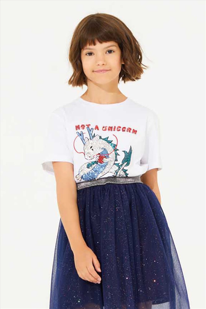 Страна производства: Россия Детская трикотажная футболка для девочек — это идеальный выбор для вашей маленькой модницы! Изготовлена из мягкого и нежного трикотажа, который прекрасно сидит на фигуре и не сковывает движения. Оригинальная аппликация из пайеток в виде яркого дракона - это то, что придаст образу оригинальности и яркости. Такая трикотажная футболка — отличный вариант как для детского праздника, так и для повседневной носки.