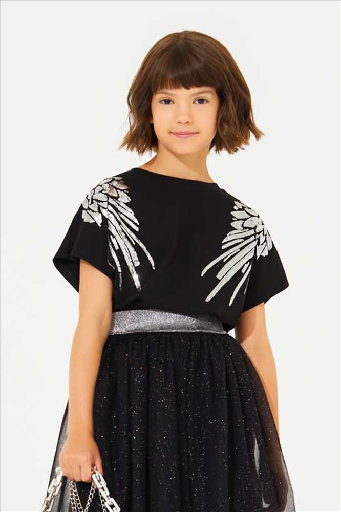 Страна производства: Россия Стильная футболка для девочек свободного силуэта, которая подойдет для любого праздника. Она идеально сочетается как с брюками, так и с юбкой. Футболка изготовлена из мягкого и нежного трикотажа, который прекрасно сидит на фигуре и не сковывает движения. Оригинальная аппликация из блестящих пайеток в виде крыльев ангела придаст образу оригинальности и яркости.