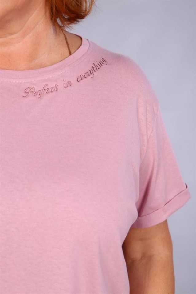Футболка выполнена из хлопка, обтачка горловины из основной ткани, рукава с манжетом, около горловины выполнена вышивка. Комментарии к товару