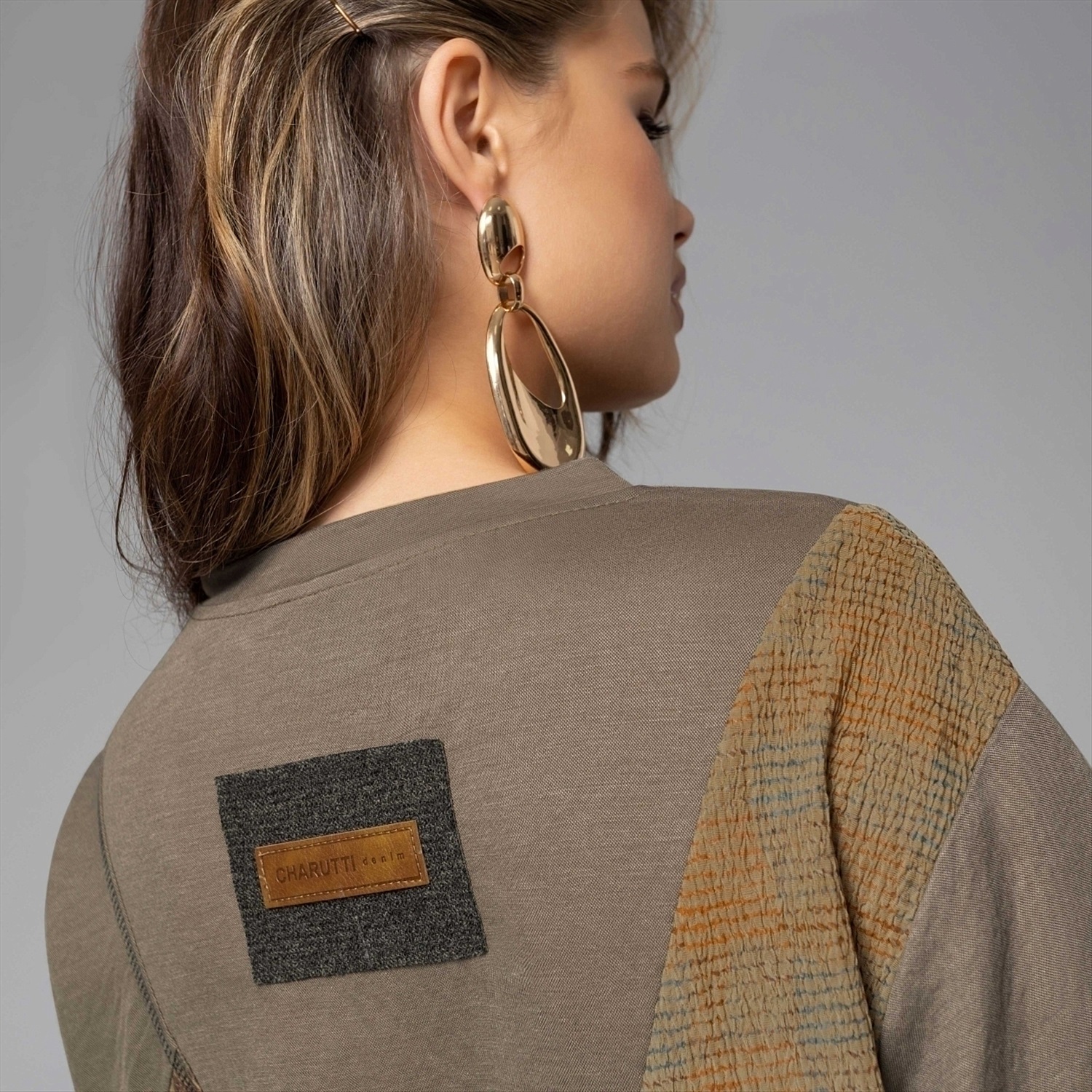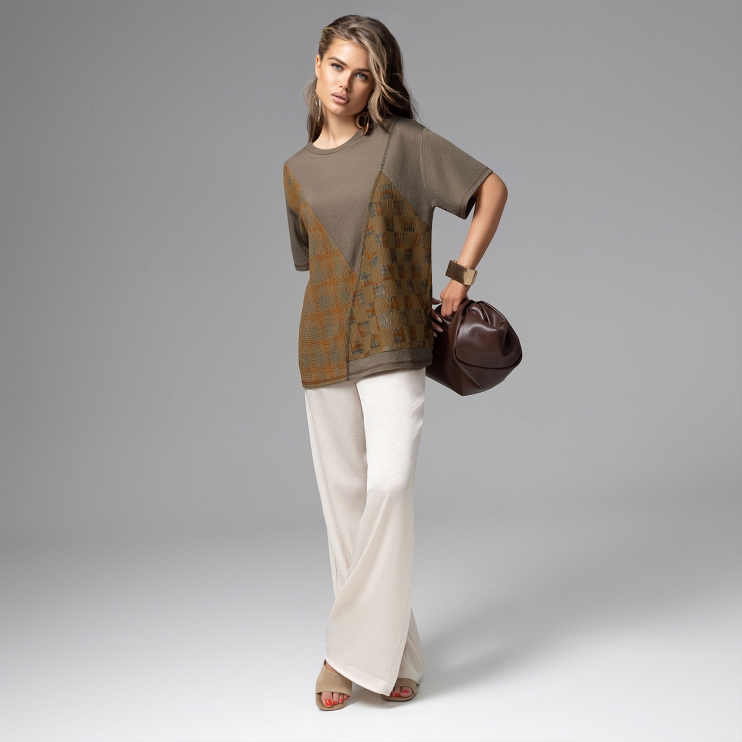 Твой стиль – это игра на грани. Сделать шаг в сторону дерзости, но сохранить идеальный баланс. Сложная геометрия, спокойная уверенность и ощущение, что ты всегда контролируете линию риска – вот что принесет в твой гардероб новая футболка от ЧАРУТТИ. Диагональная композиция визуально вытягивает силуэт и добавляет образу архитектурную чёткость. Даже на грани ты чувствуешь себя уверенно.