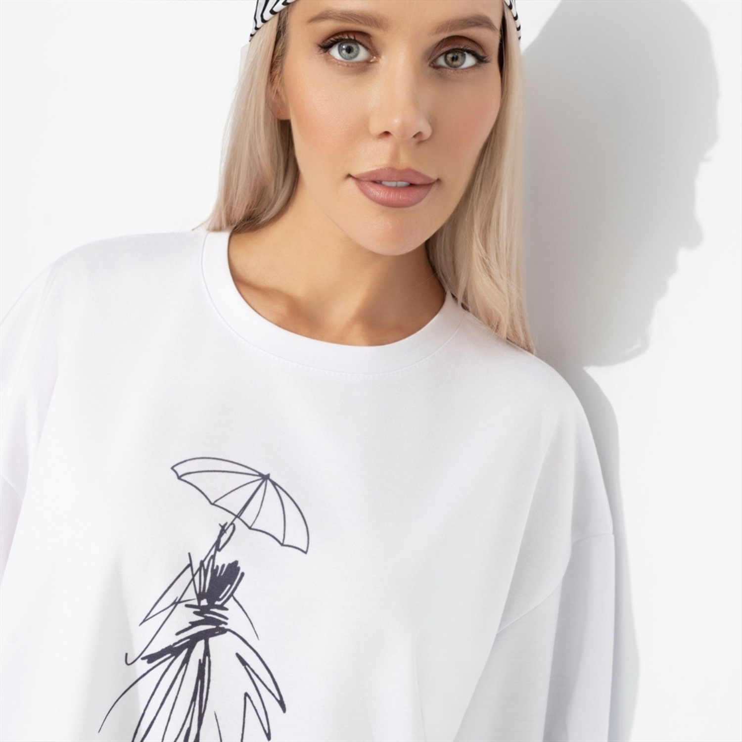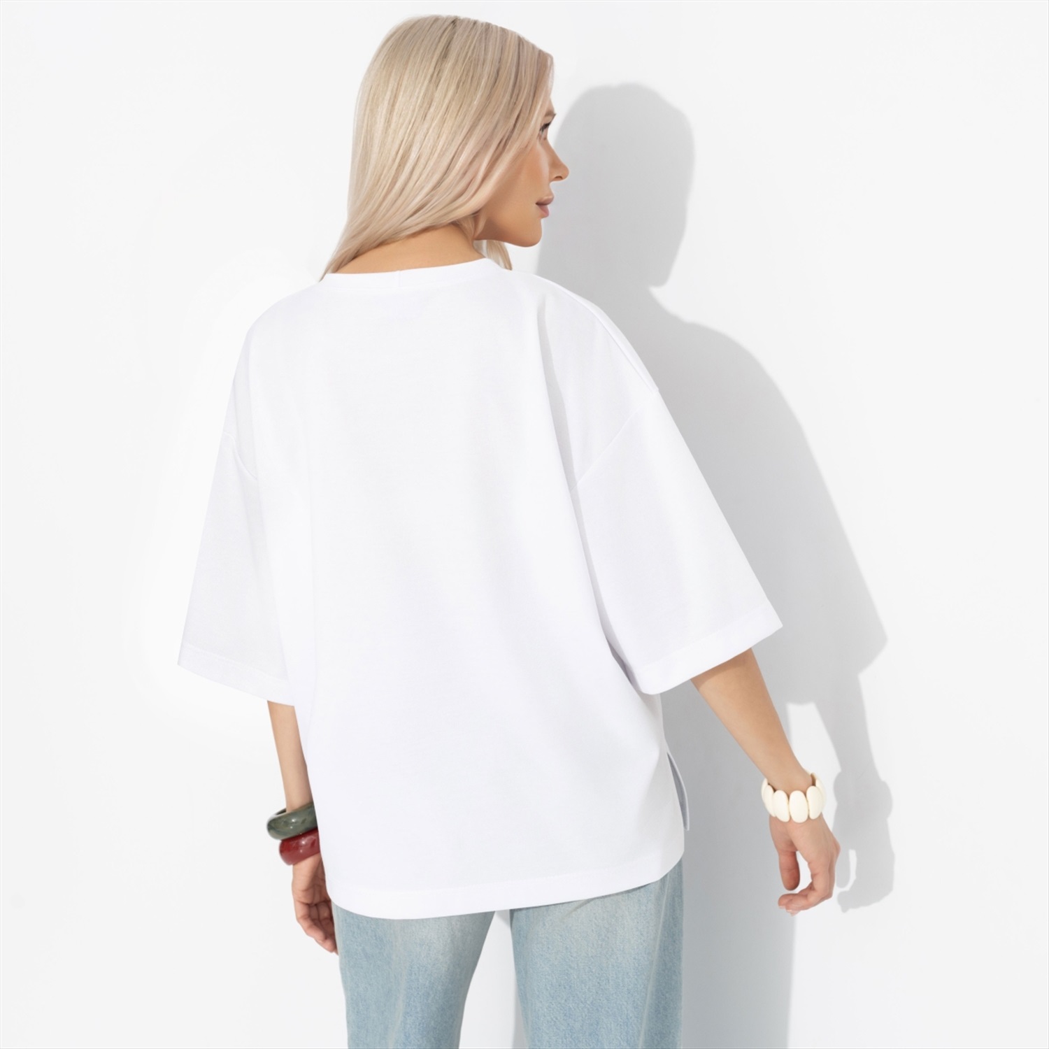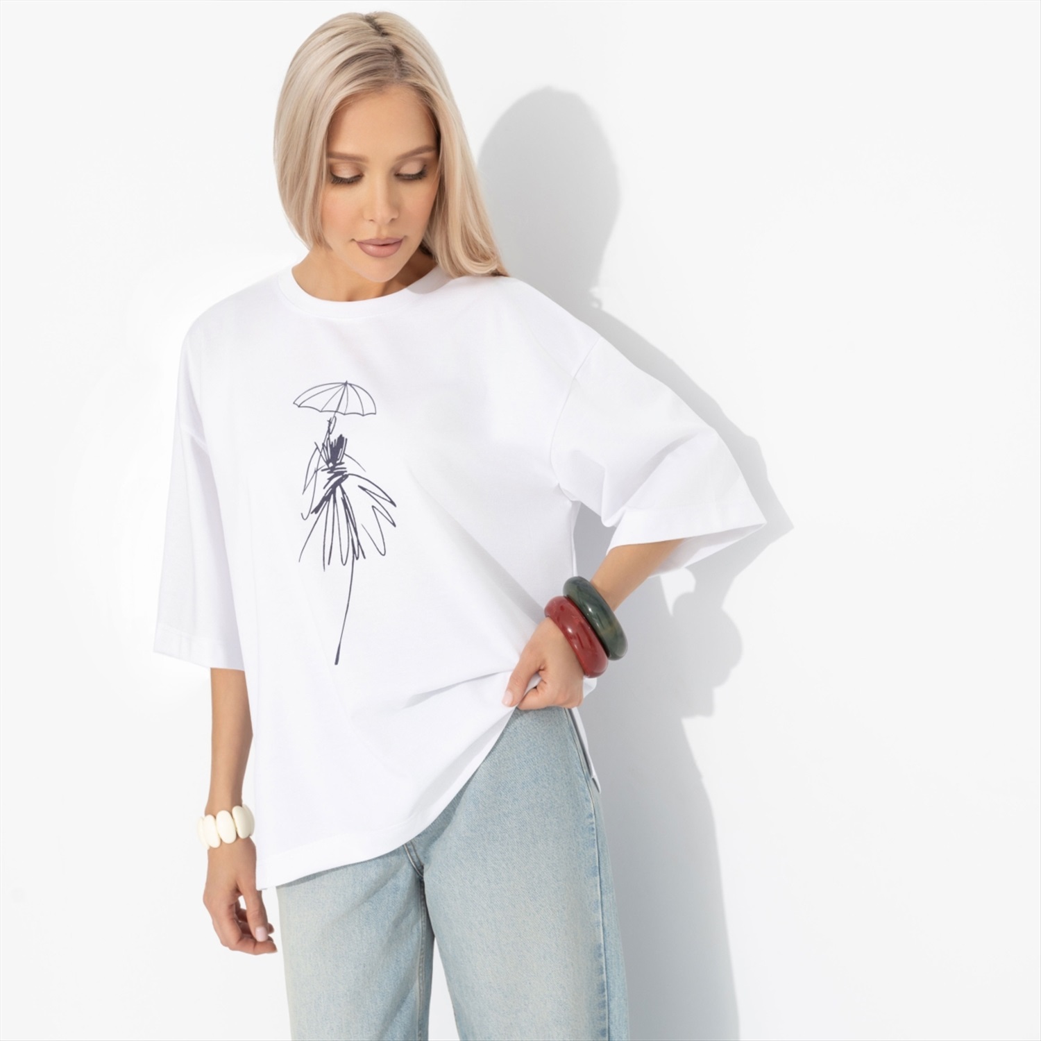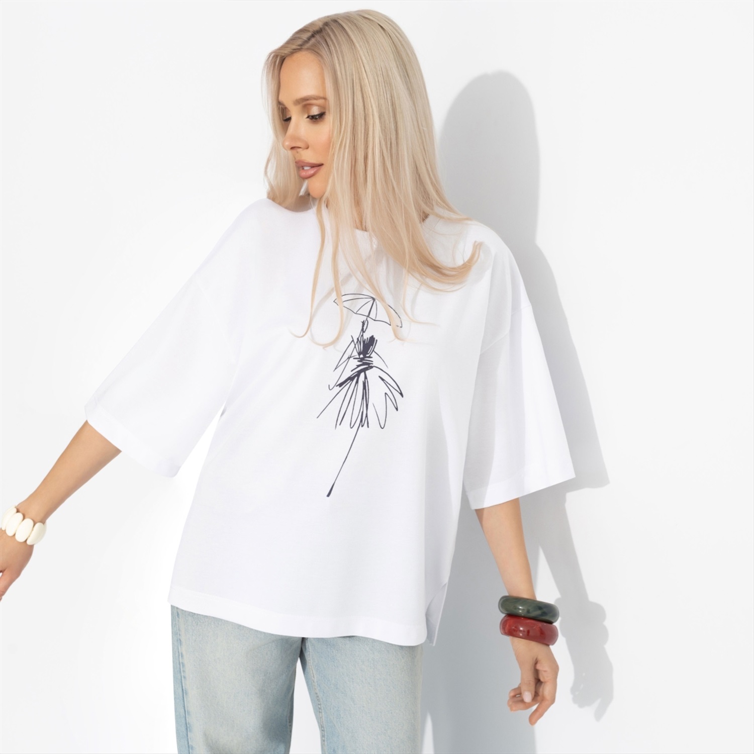Фундамент твоего гардероба от ЧАРУТТИ. Основа бесчисленных образов от расслабленного утра до динамичного дня. Футболку можно легко комбинировать с чем угодно: от строгих брюк до романтичных юбок. Мягкая ткань и комфортный силуэт дарят ощущение лёгкости и уверенности в каждом движении. Футболка свободного кроя удлиненная. Принт напечатан на ткани. Комментарии к товару