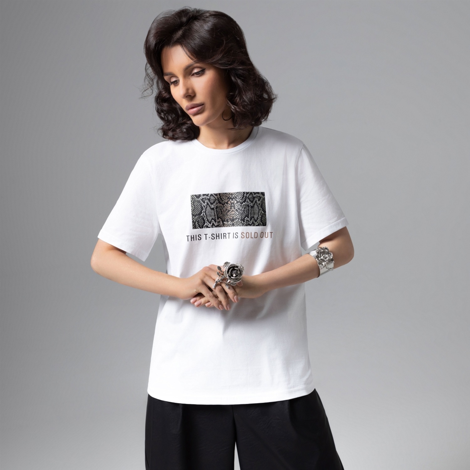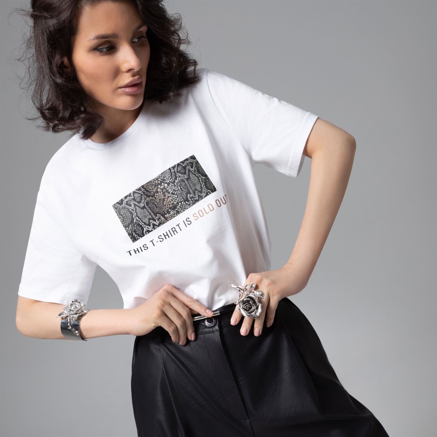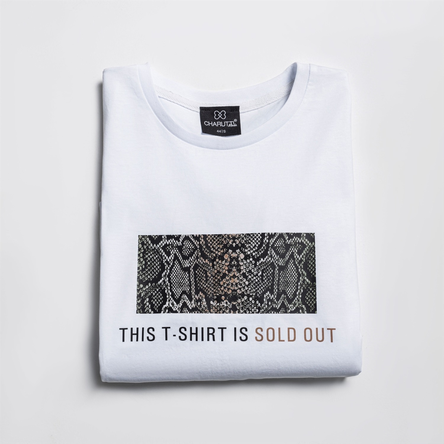 Есть модное, а есть вечное. Футболка в белом цвете от CHARUTTI подходит под обе категории. Так всегда бывает, если речь идет о коллекции PREMIUM. Хлопок премиального качества. Надпись на английском языке переводится как «эта футболка распродана». Изделие классической посадки.