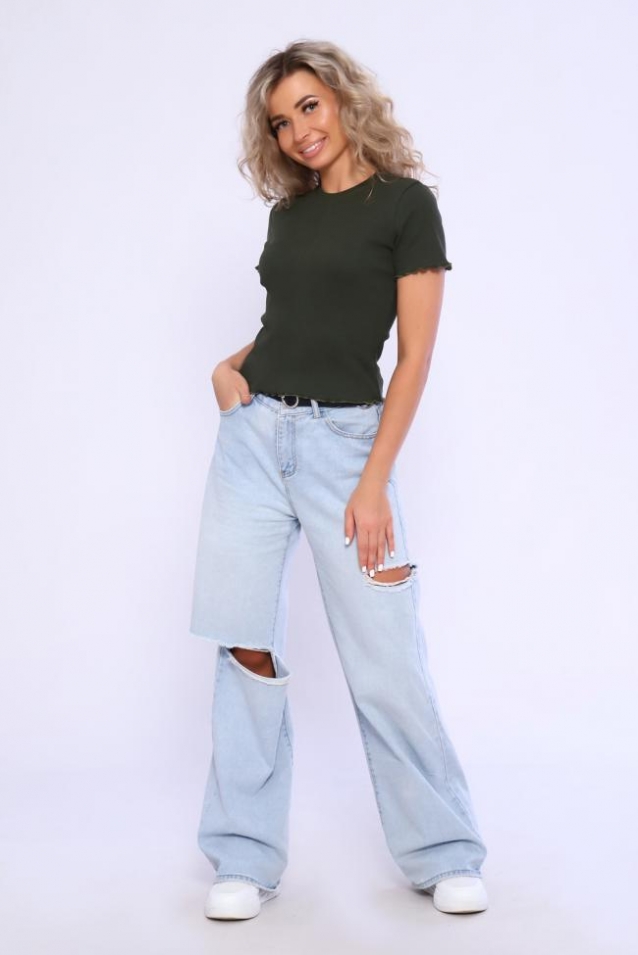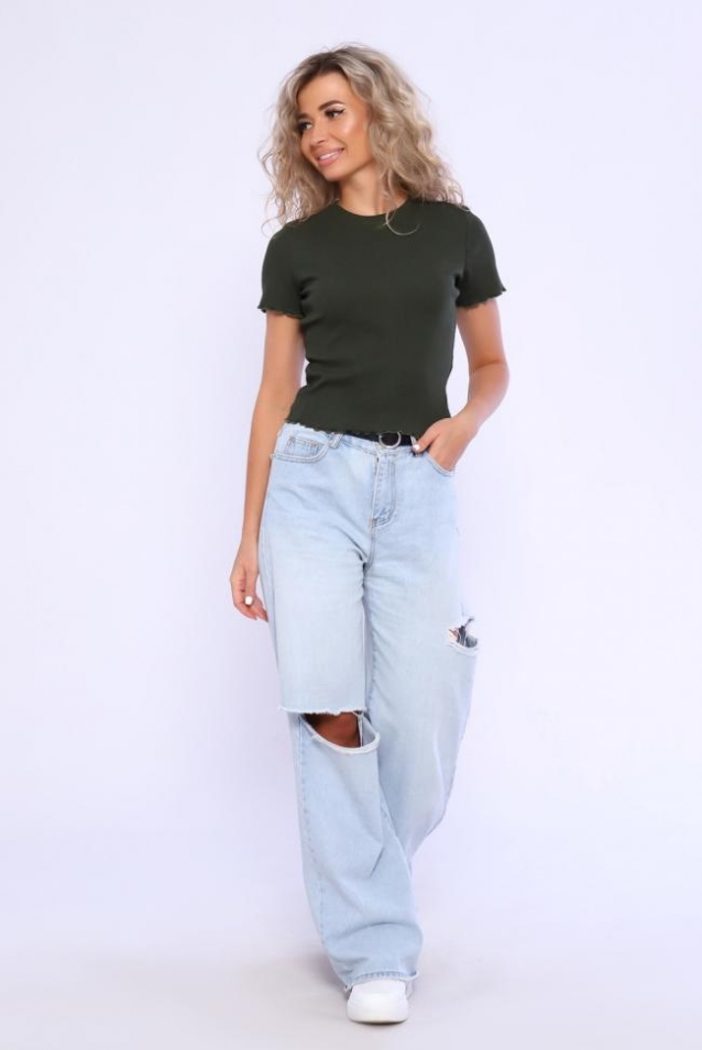 Футболка - топ укороченная молодежная, выполнена из мягкого приятного к телу кашкорсе. Рукав короткий обработан под краевку и так же низ изделия. На модели 46 размер.