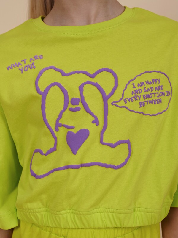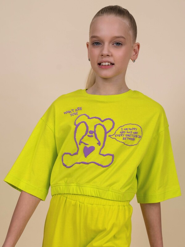 Укороченная футболка для девочки с коротким рукавом. Кроп топ свободного прямого кроя и актуальный оверсайз силуэт делают детский джемпер невероятно модным и удобным. По низу изделия резинка. Яркая и стильная вещь с принтом, излучающим любовь, охладит в жаркую погоду пропуская воздух. Можно надевать под ветровку как весенний вариант, под тонкую жилетку как летний или в качестве самостоятельного элемента гардероба девочек для создания многослойного образа. Объемная короткая кофта самая уютная вещь на весну и на лето. Базовая вещь в гардеробе стильного малыша. Благодаря уникальному крою, комфортно подойдет для любой фигуры девушки, для высоких и невысоких детей. Мягкая трикотажная блузка подойдет на улицу для прогулок, отдыха на природе, путешествий, посещение кружков и секций, на танцы и хип-хопа, занятия спортом, как домашняя одежда для дома и повседневный вариант. Станет самой любимым и востребованным в гардеробе ребенка. Размерная линейка: 3 (98); 4 (104); 5 (110); 6 (116); 7 (122); 8 (128); 9 (134); 10 (140); 11 (146). Выбирайте нужный размер по таблице размеров на фото. Цвет товара на экране вашего устройства может отличаться от цвета изделия вживую.