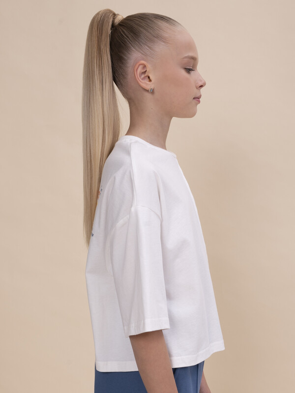 Укороченная футболка для девочки с коротким рукавом. Кроп топ свободного прямого кроя и актуальный оверсайз силуэт делают детский джемпер невероятно модным и удобным. Яркая и стильная вещь с принтом на спине, излучающим любовь, охладит в жаркую погоду пропуская воздух. Можно надевать под ветровку как весенний вариант, под тонкую жилетку как летний или в качестве самостоятельного элемента гардероба девочек для создания многослойного образа. Объемная короткая кофта самая уютная вещь на весну и на лето. Базовая вещь в гардеробе стильного малыша. Благодаря уникальному крою, комфортно подойдет для любой фигуры девушки, для высоких и невысоких детей. Мягкая трикотажная блузка подойдет на улицу для прогулок, отдыха на природе, путешествий, посещение кружков и секций, на танцы и хип-хопа, занятия спортом, как домашняя одежда для дома и повседневный вариант. Станет самой любимым и востребованным в гардеробе ребенка. Размерная линейка: 1 (86); 2 (92); 3 (98); 4 (104); 5 (110); 6 (116); 7 (122); 8 (128); 9 (134); 10 (140); 11 (146). Выбирайте нужный размер по таблице размеров на фото. Цвет товара на экране вашего устройства может отличаться от цвета изделия вживую.