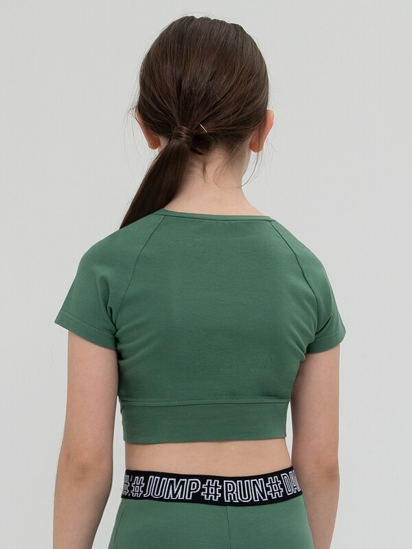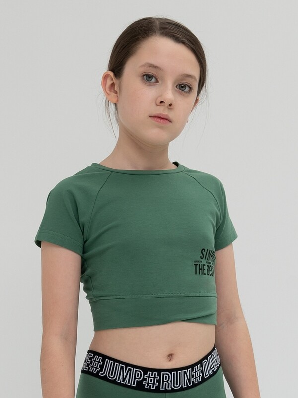 Спортивная укороченная футболка топ для девочки из натурального материала. Мягкий, эластичный, прочный, дышащий. Не теряет свойств после многочисленных стирок. Рукава реглан не сдерживают активные движения ребенка. А фигурная линия низа плотно, но мягко зафиксирует топ на месте и он не будет подниматься вверх. Небольшой, но заметный и стильный принт переводится как Просто лучшая, оставайся активной выделит юную модницу и придаст ей уверенности.