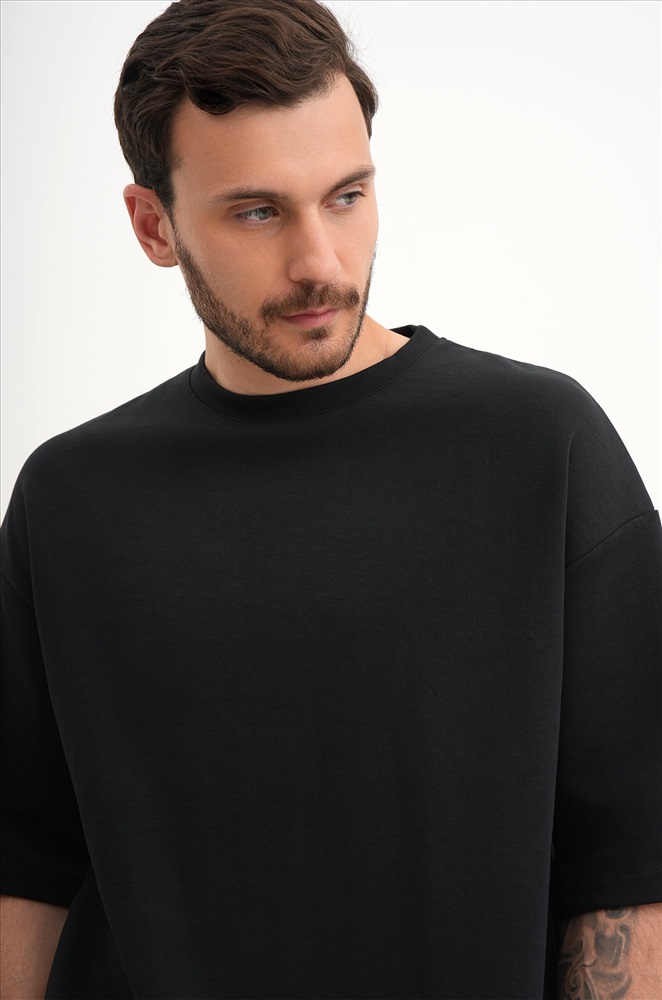 Мужская футболка оверсайз – комфорт и стиль каждый день. Плотная футболка станет основой многослойных образов. Лаконичная черная футболка — идеальный выбор для тех, кто ценит универсальность и классический дизайн. Плотный трикотаж (310 г/м²), свободный силуэт и удлиненный крой делают эту футболку незаменимой для стильных образов.