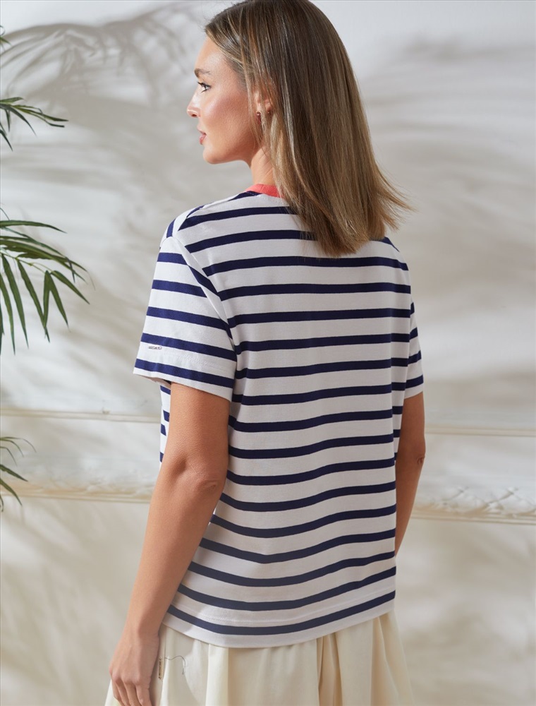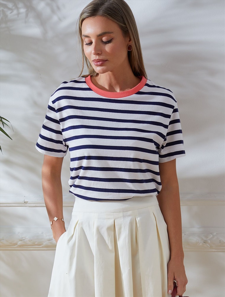 Базовая футболка в бело-синюю полоску выполнена из премиального дышащего хлопка с добавлением эластана. Эта футболка идеально подходит для создания стильного образа. Классический вариант на лето или как нижний слой в прохладное время года.Футболка отлично держит форму и не теряет привлекательности даже после многочисленных стирок. Базовая полосатая футболка с ярким акцентом легко комбинируется с различными предметами гардероба и станет неотъемлемой частью вашего образа. Футболка из натурального хлопка идеально подойдет для создания стильных и молодежных образов. Модная футболка в полоску – это возможность выразить себя и подчеркнуть свою уникальность.