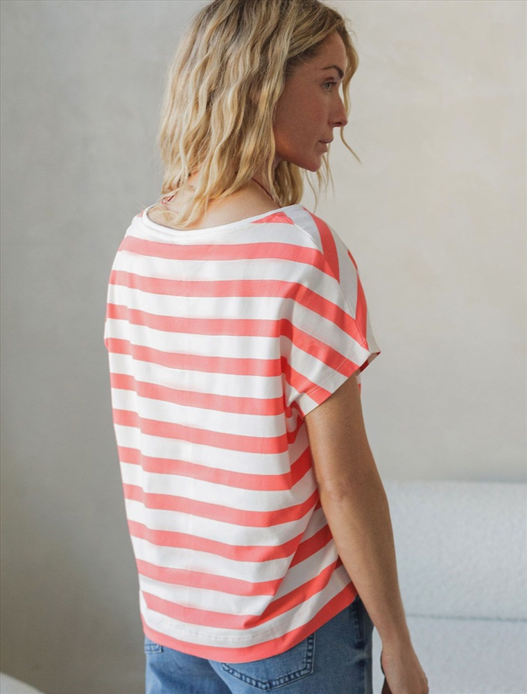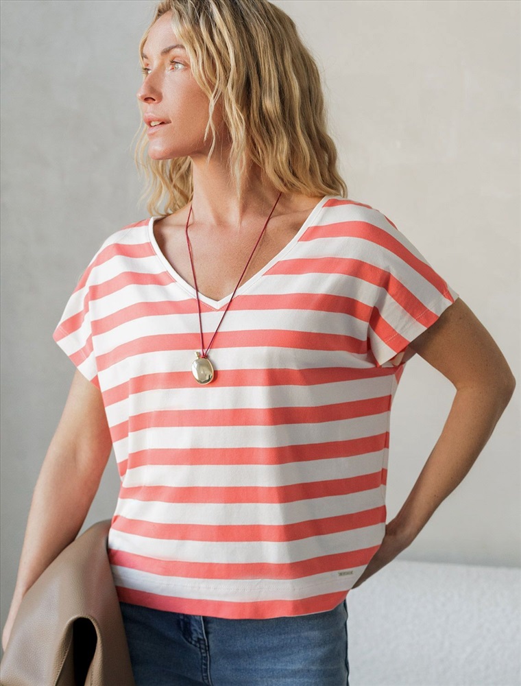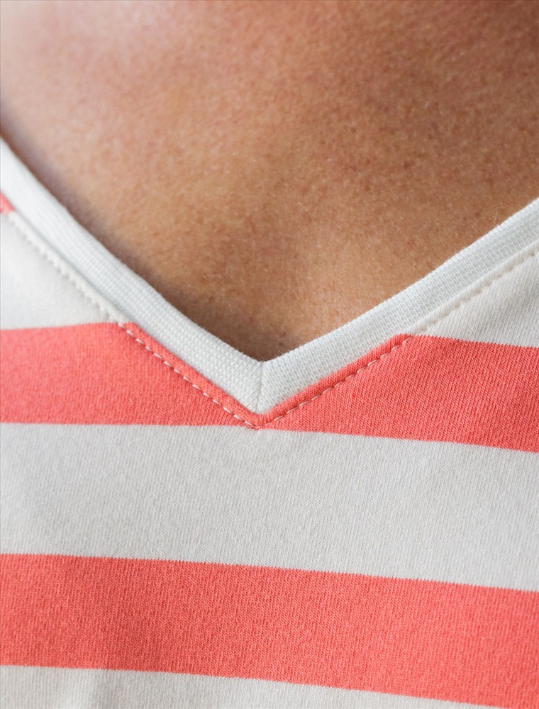 Стильная свободная футболка бело-кораллового цвета с горизонтальной полоской и выразительным V-вырезом создана для девушек и женщин, которые ценят комфорт и натуральность. Прямой крой обеспечивают непревзойденную легкость в теплую и жаркую погоду, позволяя телу дышать. Натуральный хлопок премиального качества — отличается дышащими свойствами и высокой износостойкостью, подходит для самой чувствительной кожи. V вырез гармонично подчеркивает линию шеи, такой вырез визуально удлиняет силуэт, подчеркивая достоинства фигуры. Цельнокроеный рукав гарантирует свободу движений и аккуратную посадку, что особенно актуально для активного образа жизни. Принт полоска расположена горизонтально, что добавляет образу динамики и современности. Подойдет на большие размеры, комфортно сидит любой фигуре. Повседневная футболка сочетается с базовыми и акцентными элементами одежды, позволяет создавать различные повседневные или яркие образы.
